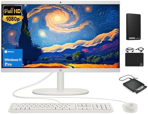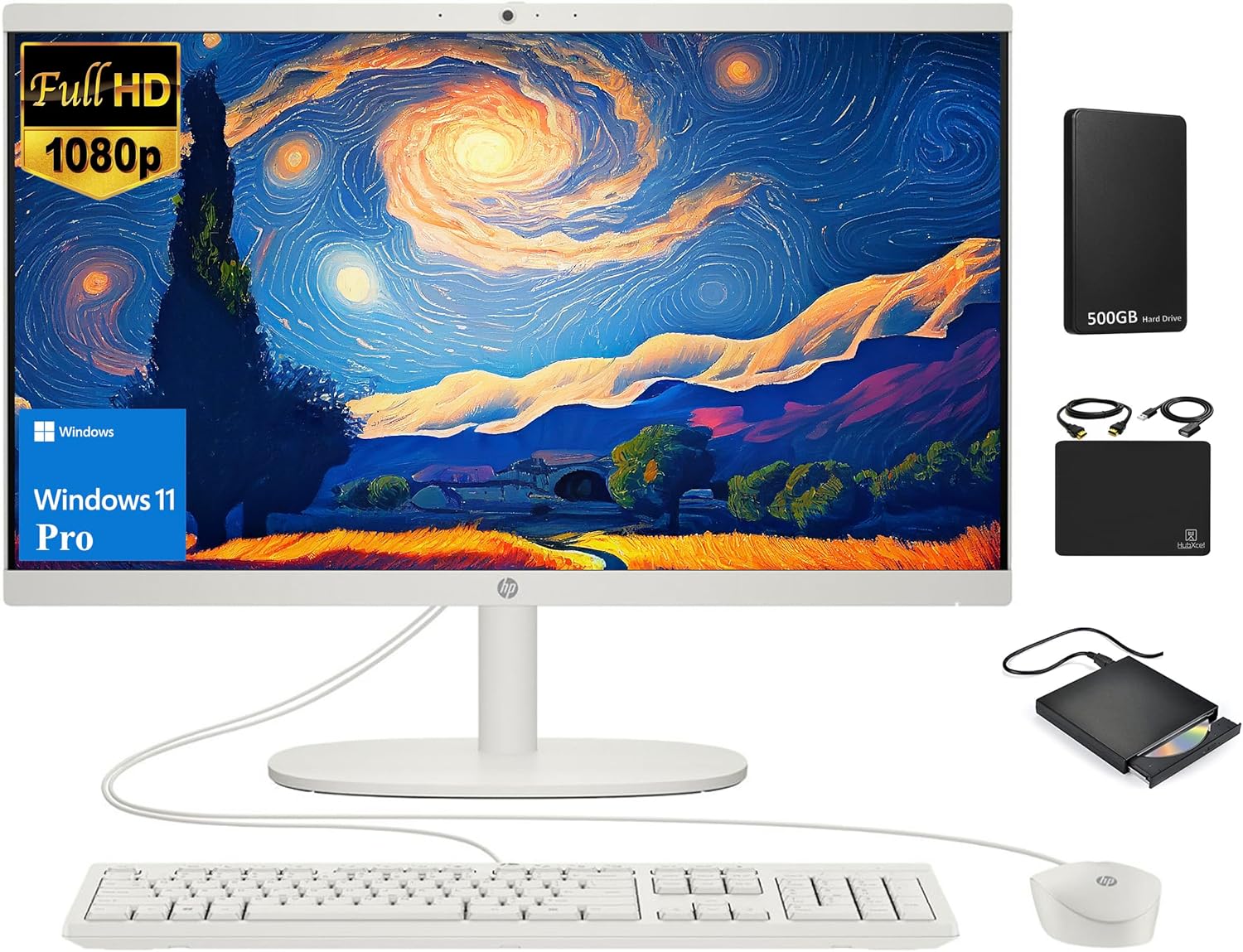 HP All-in-One Desktop Computer 2024, 21.5" FHD Display, 16GB RAM, 1TB Storage (512GB SSD+500GB External Drive), Intel Celeron Processor, Webcam, RJ-45, Keyboard & Mouse, Marxsol-DVD +/-RW, Win 11 Pro