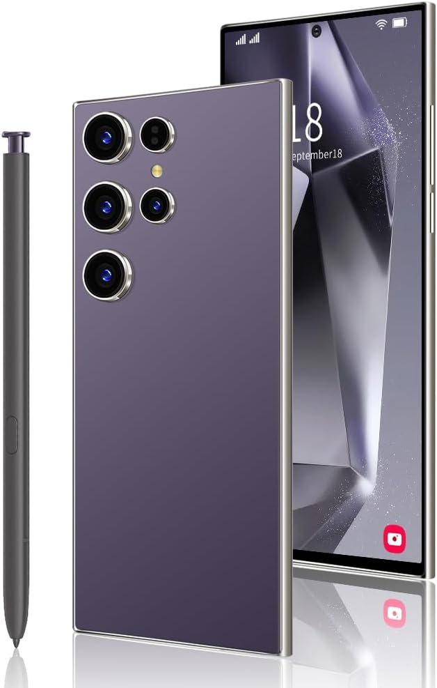Echoamo S24 Ultra Cell Phones 5G Unlocked Phone,Smartphone with Tool Pen, Android 14.0 Cell Phone 8GB+256GB Dual SIM Dual Standby(Purple)