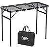 Folding Grill Table, Aluminum Camping Table Adjustable Height Max 27.5" Picnic Table Outdoor Table, Lightweight, Portable Handle for Travel Cooking BBQ Picnic, 35" x 16", Black