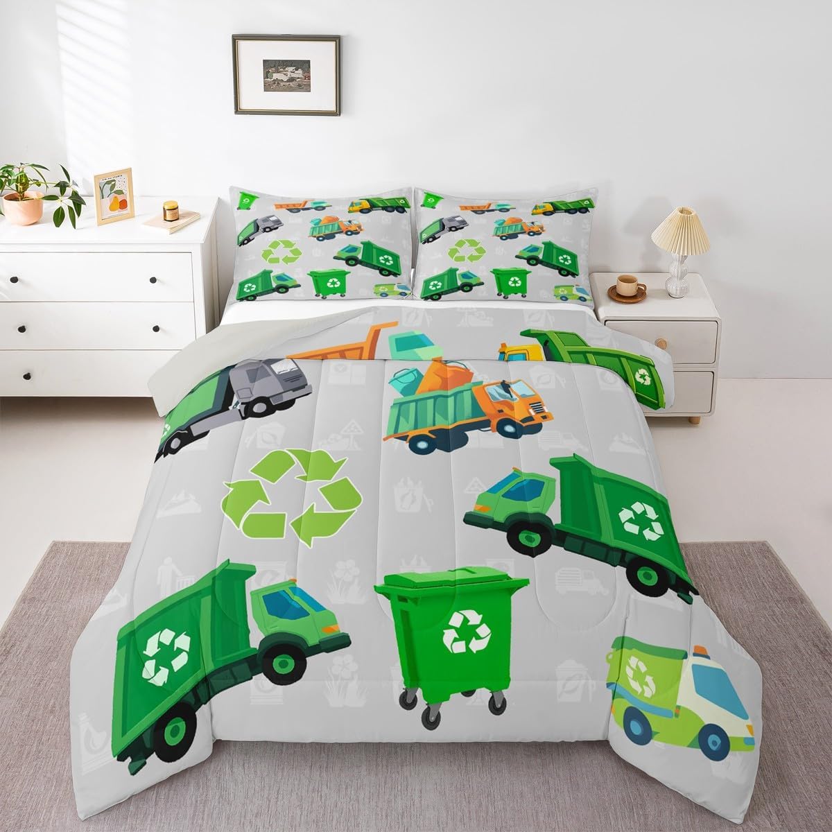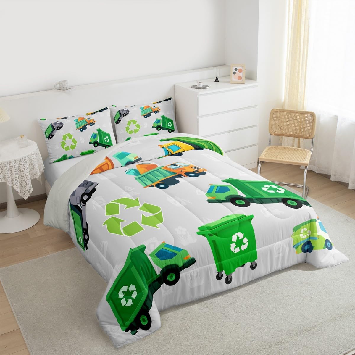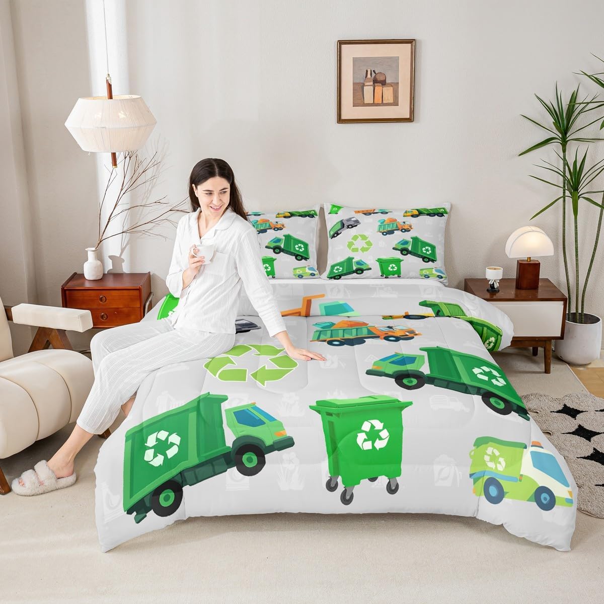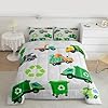 Feelyou Green Garbage Truck Toddler Size Bedding Set Cartoon Trash Truck Comforter Set for Kids Boys Girls Teens Green Vehicle Car Comforter Garbage Truck Toy Duvet Set with 1 Pillow Case