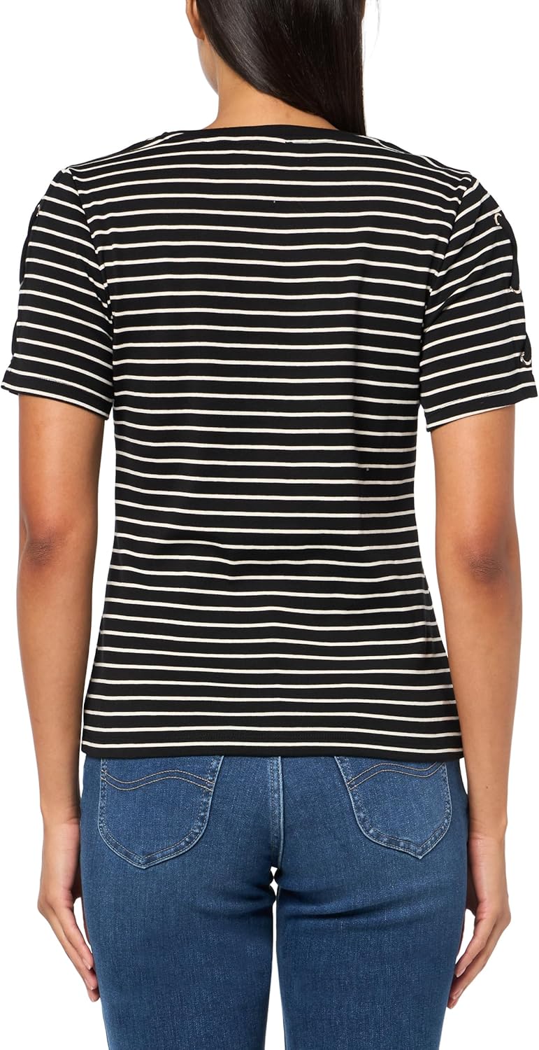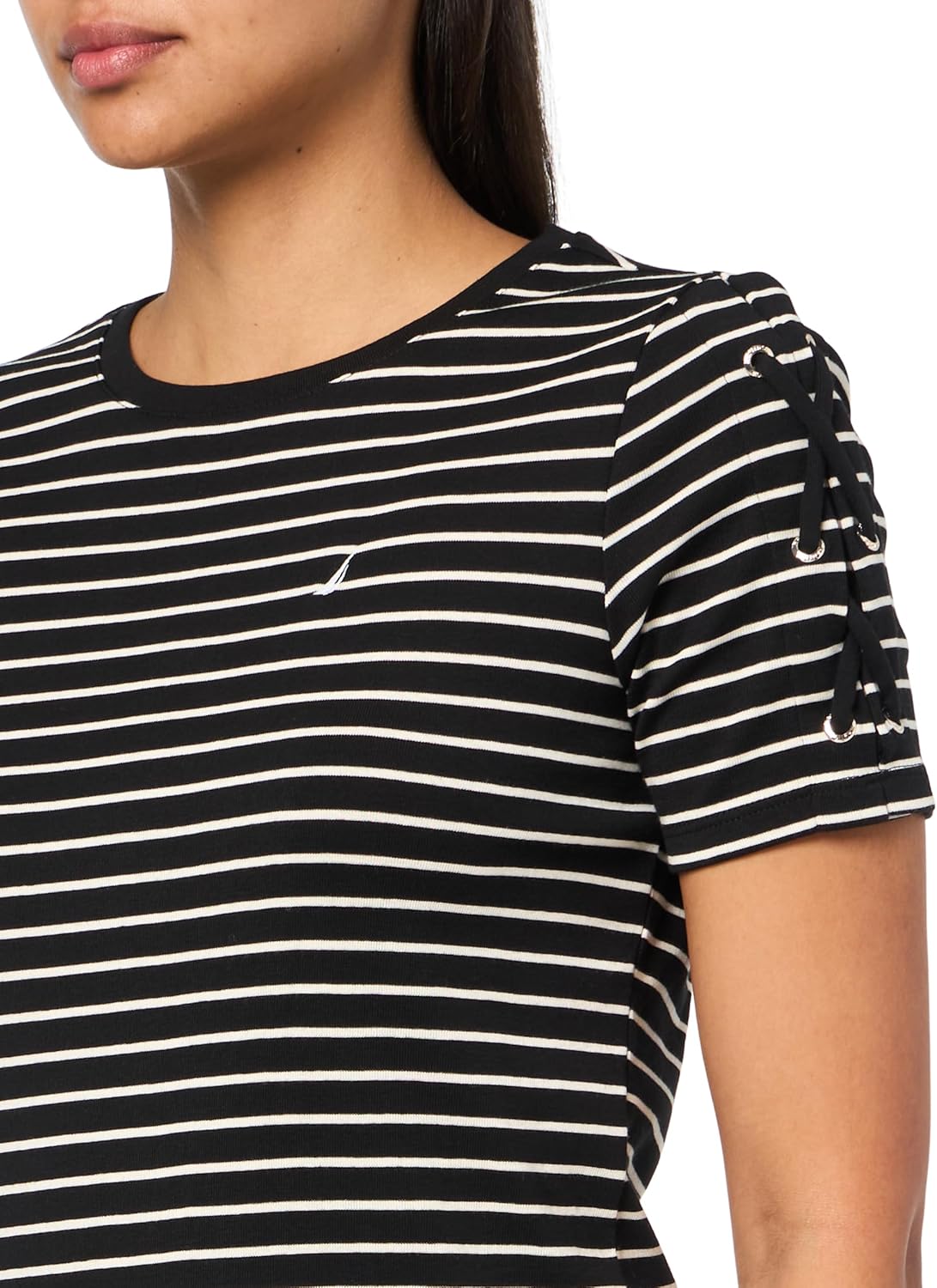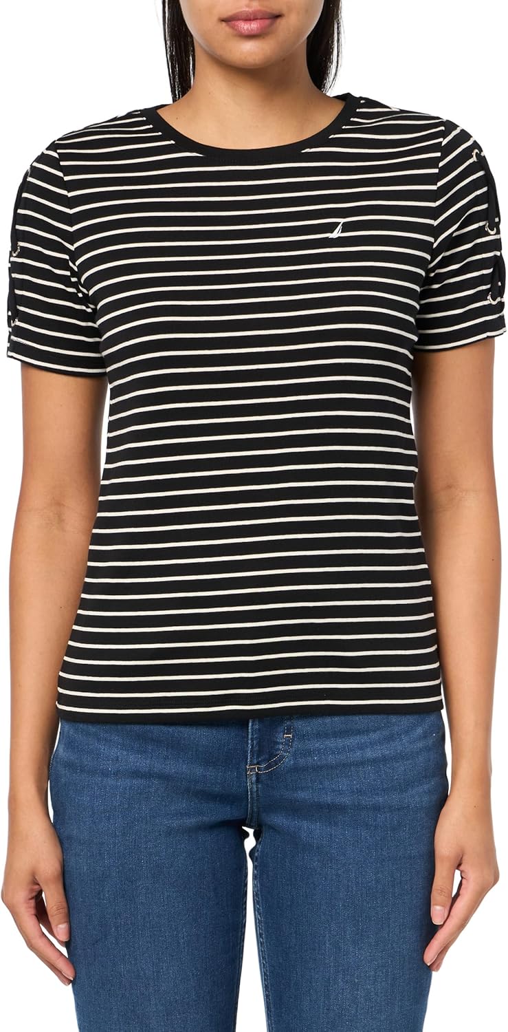 Nautica Womens T-Shirt Cotton Crewneck with Laceup Sleeve Detail