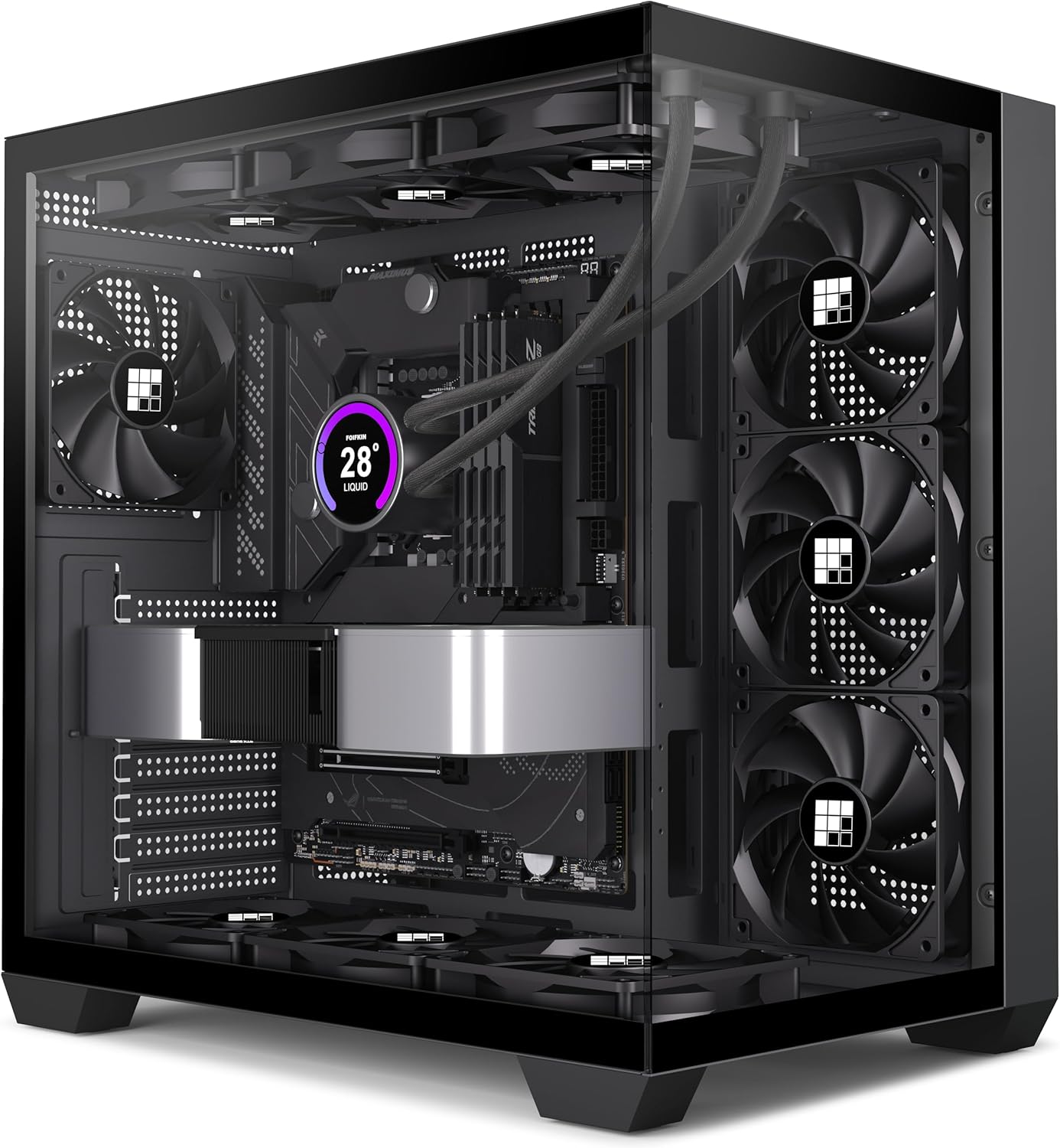【270° Panoramic Dual Cabin Design】The FOIFKIN F300(2025) PC case adopts a sleek and modern design, consisting of a 270° panoramic tempered glass panel for a wider field of vision. The design of the fully transparent glass curtain wall provides a high-quality display platform for your high-end hardware components. The tempered glass has good sound insulation, provides great comfort for office/gaming environments, requires no tools and is easy to disassemble.