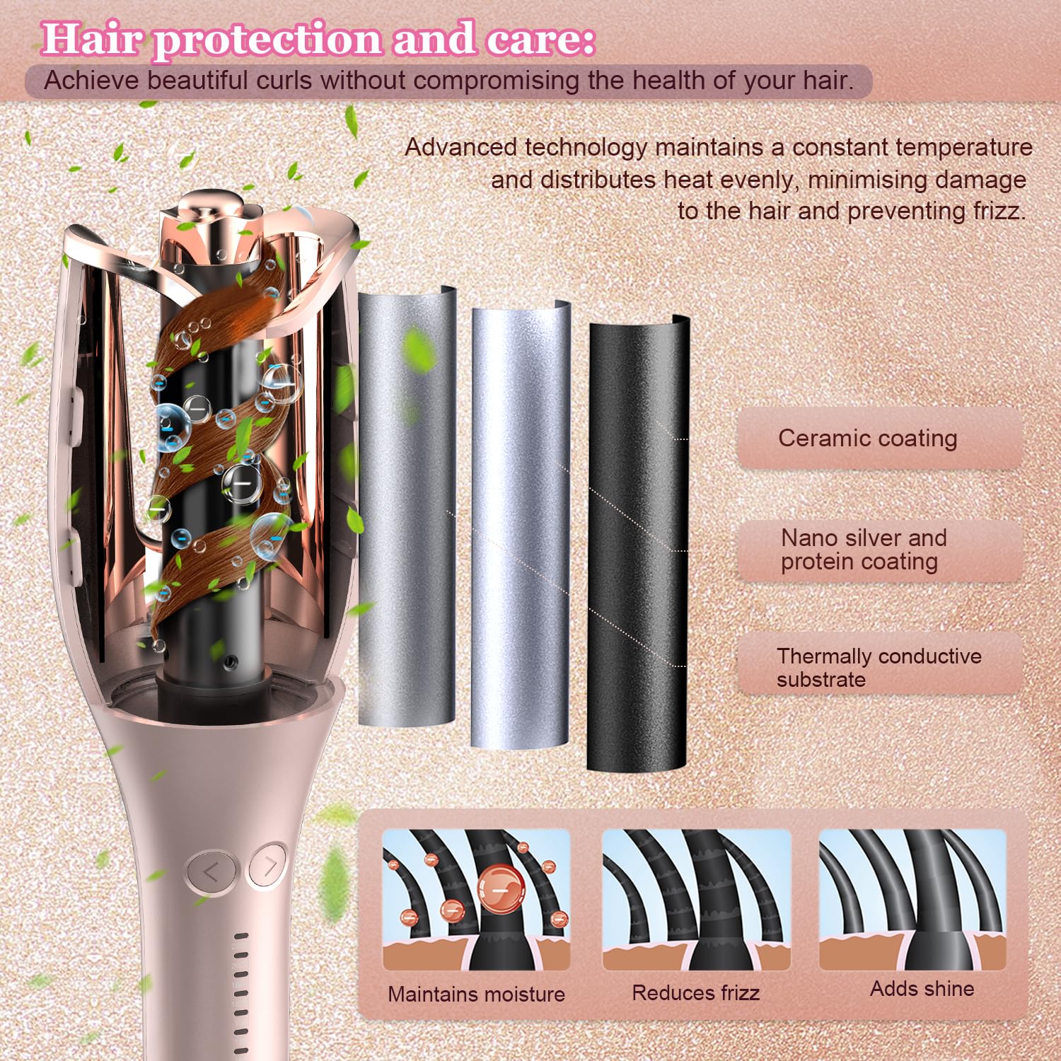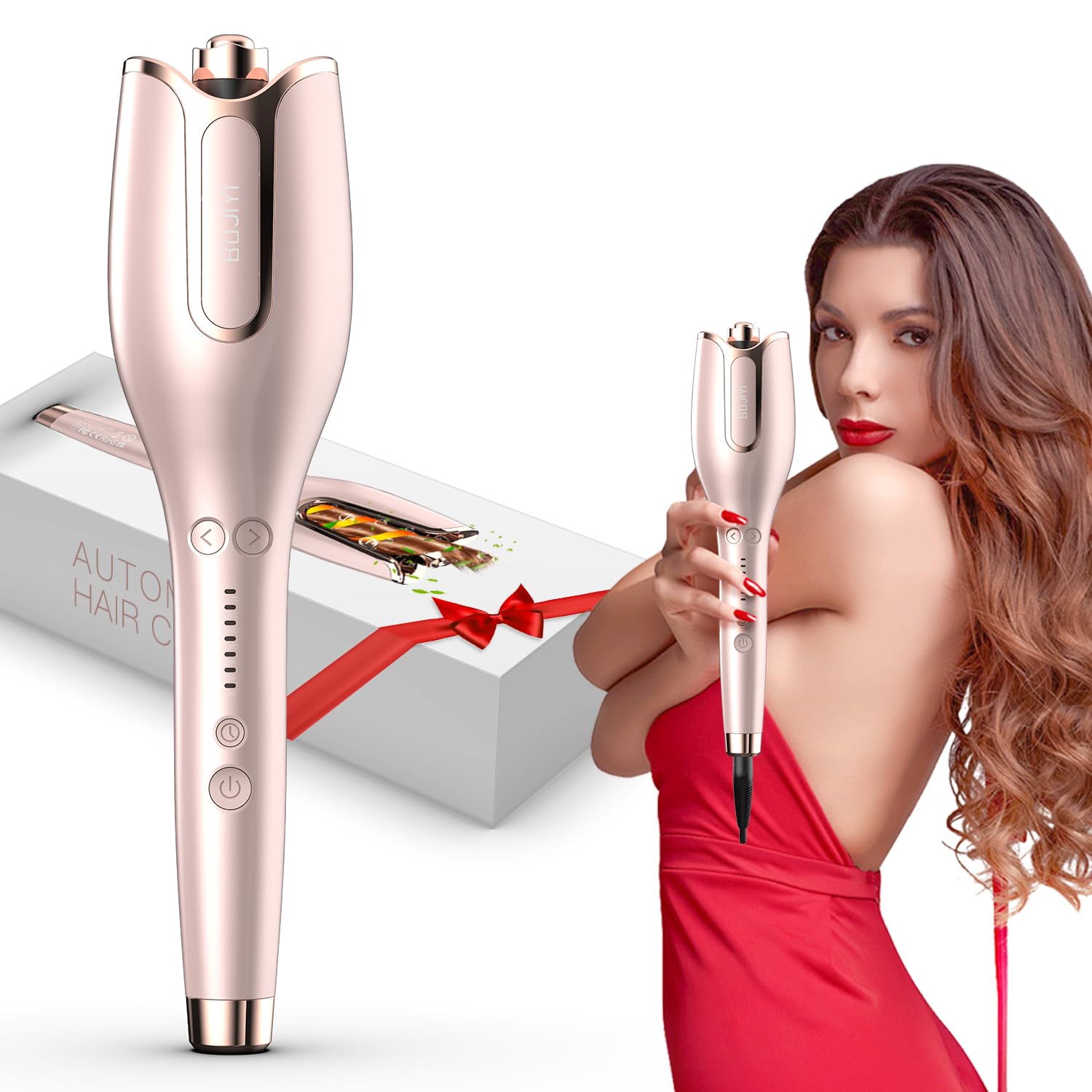 【One button to save time, no technique needed】1 inch ceramic rotating barrel is perfect for 6-25 inch length hair,Automatic Hair Curler is designed with one button curling for all ages, with or without any experience! No skills required, you just need to put in some hair, press the button on the side for 10s, and you'll have yourself stunning beach curls.