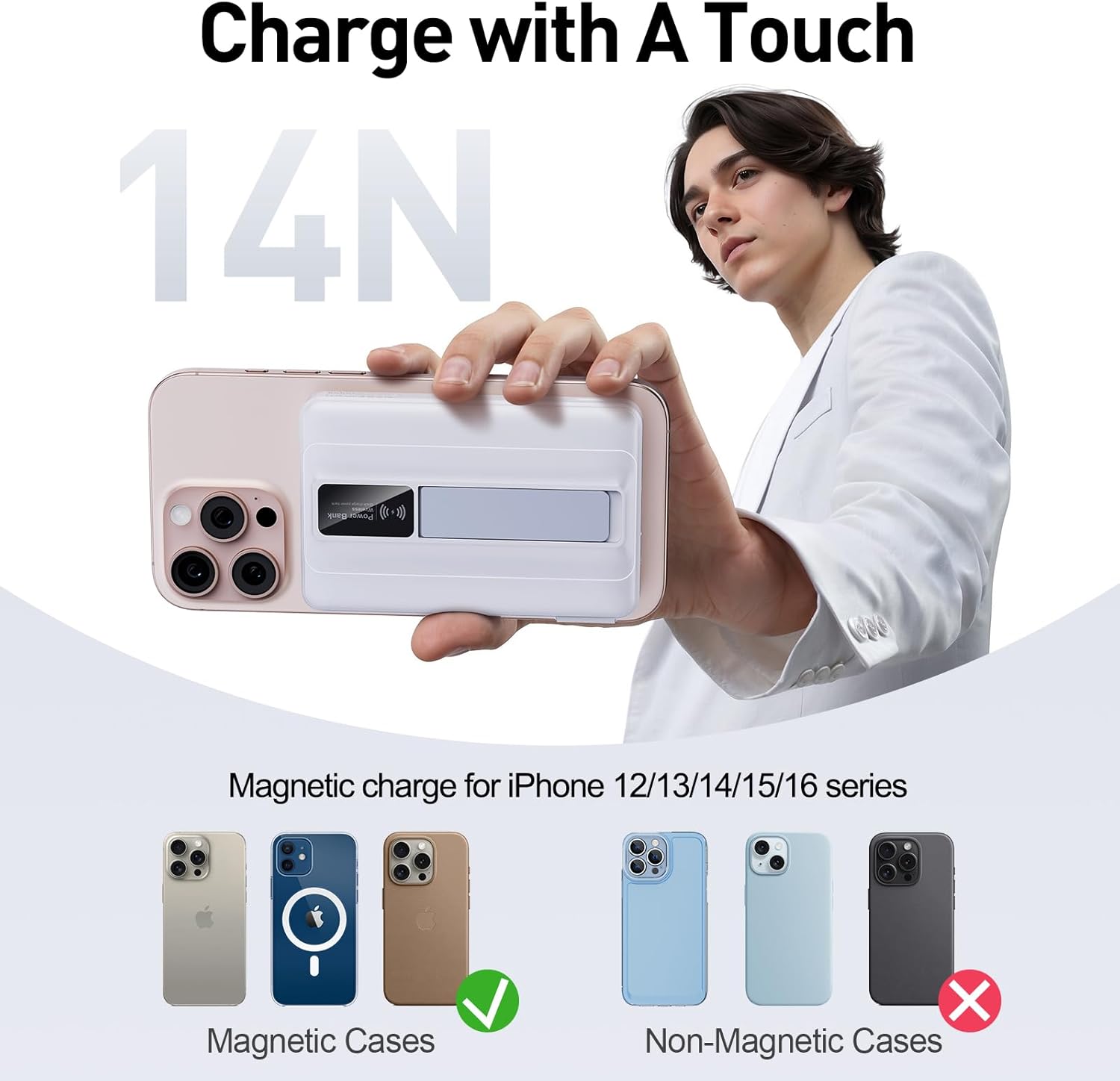 Cargador Portátil Power Bank 2025 de 10000mAh de Alta Capacidad Recargable: El paquete de batería adopta la última tecnología magnética de 2024, tecnología de nano adsorción que puede proporcionar una succión más potente. Equipado con iones de litio con mayor densidad energética y mejores características de seguridad, lo que hace que el banco de energía sea más compacto pero con mayor capacidad. La batería de gran capacidad de 10000mAh puede cargar el iPhone 15/14/13/12 de 2 a 3 veces. Asegura que tenga suficiente energía para disfrutar de su viaje. (Aprobado por aerolíneas)