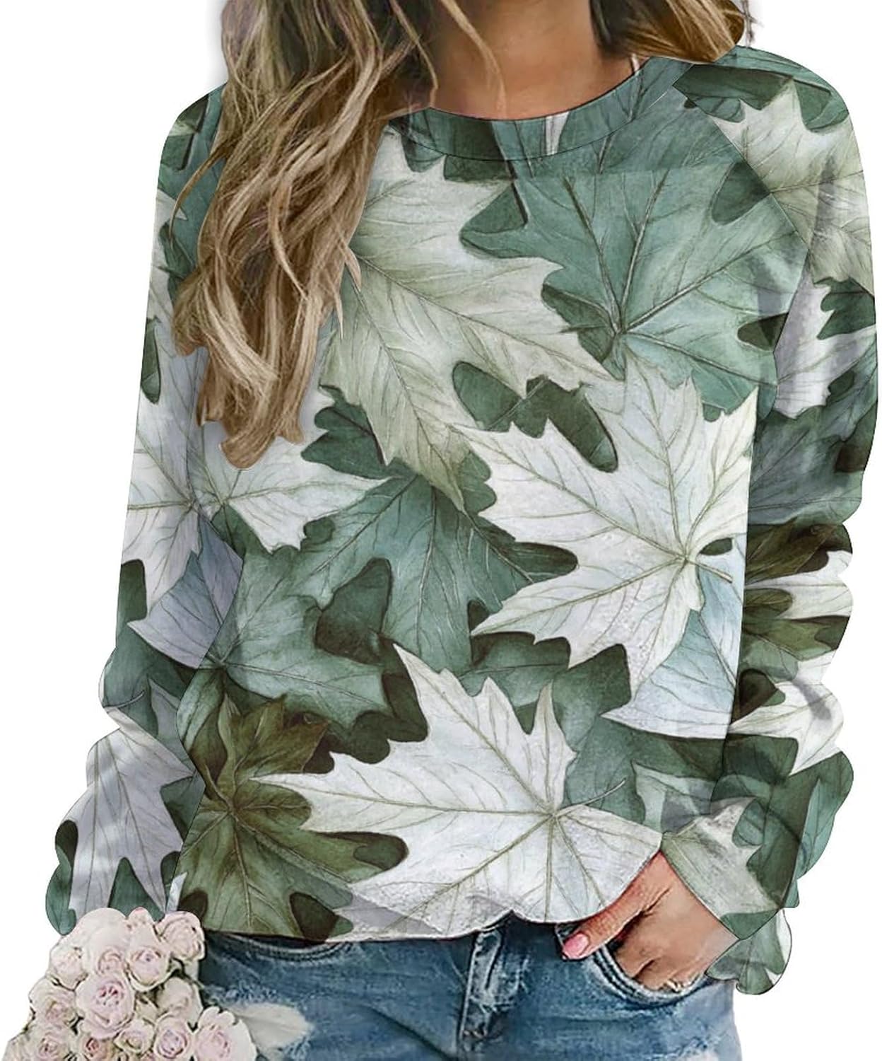 ZOCAVIA Womens Fall Crewneck Sweatshirts Fashion Casual Long Sleeve Pullover Tops Country Camo Maple Graphic Shirts Oversized