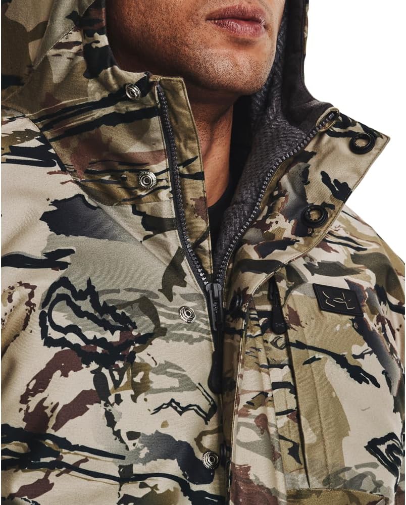 Presenting the Under Armour Men's UA Stormproof ColdGear Infrared Deep Freeze Jacket - an essential item for any man who ventures into the great outdoors, regardless of the weather conditions. This high-performance jacket is designed to keep you warm, dry, and comfortable in even the most severe weather conditions. The jacket's main feature is its revolutionary ColdGear Infrared technology. This unique technology uses a soft, thermo-conductive coating inside the jacket to absorb and retain your own body heat. It keeps you warm without adding any extra weight or bulk, allowing you to remain agile and move freely. This means that even in the bitter cold, you can work out, hike, hunt, or engage in any outdoor activity you choose. The jacket is 100% waterproof with fully taped seams, ensuring that you stay dry in even the heaviest rain or snow. Additionally, the jacket features UA Storm technology, which repels water without sacrificing the breathability of the fabric. This ensures that you stay dry from both outside elements and internal perspiration. Inside, the jacket is lined with a warm waffle fleece, providing additional insulation. The jacket also includes strategic synthetic insulation in the body, sleeves, and hood, providing extra warmth where you need it most. The Men's UA Stormproof ColdGear Infrared Deep Freeze Jacket is also equipped with a variety of features designed for outdoor adventure. The scuba neck hood provides additional coverage and can be adjusted with a bungee cord for a perfect fit. The jacket also has secure zip hand pockets and a chest pocket to keep your essentials safe and within reach. Plus, the jacket is harness-compatible, designed to keep you safe in the treestand. This jacket is available in a range of colors, all featuring a quiet, durable outer fabric that won't give you away to wildlife
