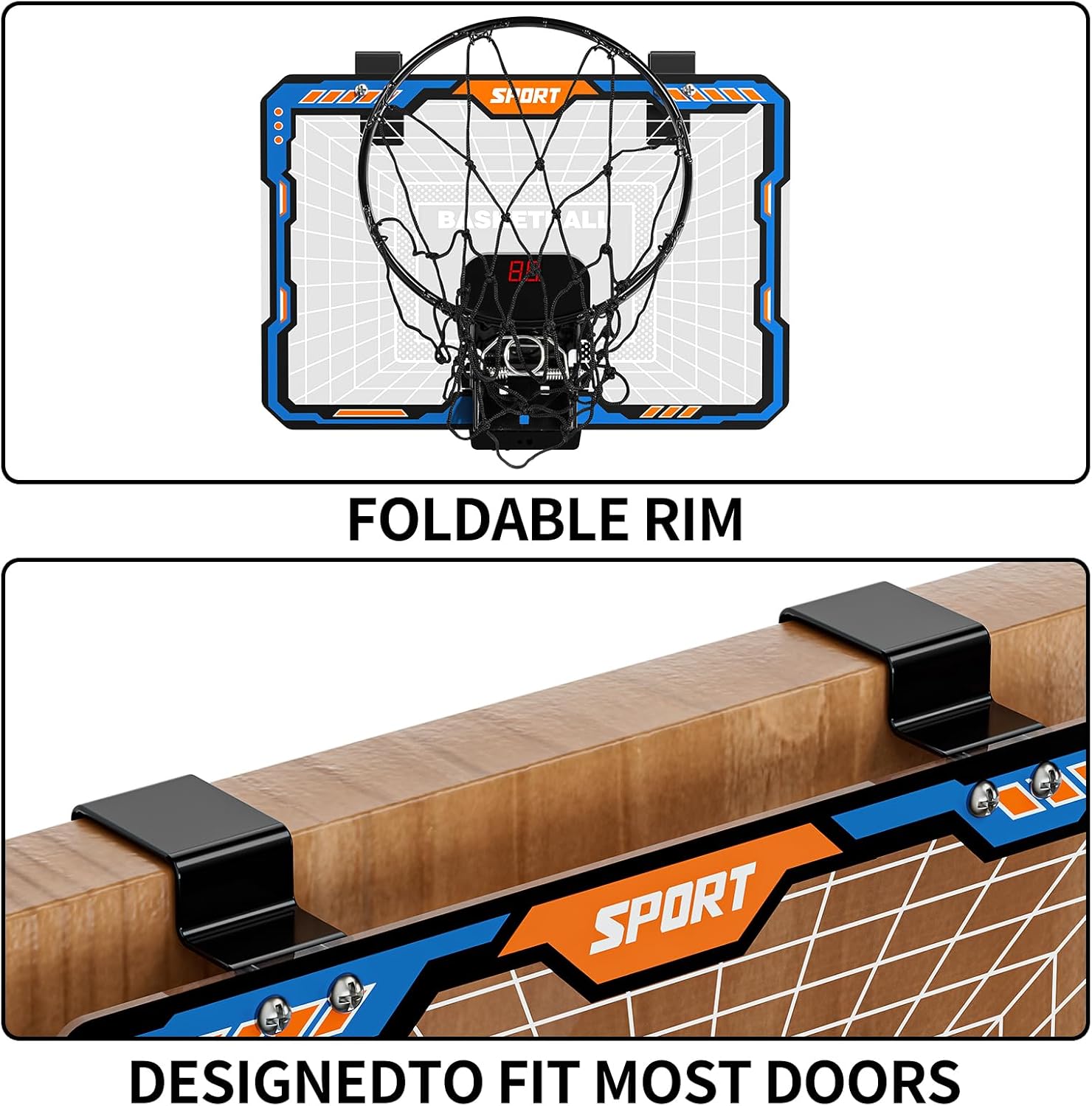 7 LED Lights & Electronic Scoreboard - Our indoor basketball hoop with 7 led light effect and automatic scoring function, easily record game scores, every time score a goal, it cheers for your child. The mini basketball hoop provides 3 game modes—single score mode, double competition mode and challenge mode, bringing the excitement of basketball into your home.