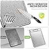 [Reducing Scratch Design]: The surface of the stainless steel cutting board adopts a unique grid design, which can effectively reduce scratches caused by cutting, but because of the special nature of stainless steel, scratches cannot be completely avoided. In addition, the mesh texture can prevent food from sliding, providing a safer cutting experience. This grid design helps keep your cutting board in good condition for longer even with frequent use.