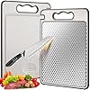 [2-in-1 Meat and Vegetable Cutting Board]:Our double-sided cutting board is made of food-grade 304 stainless steel on one side, which is particularly suitable for cutting meat. The other side is made of environmentally friendly BPA-free wheat straw fiber, which is very suitable for cutting fruits and vegetables. The double-sided design helps to maintain the pure taste of the ingredients and avoid unnecessary flavor crossover.