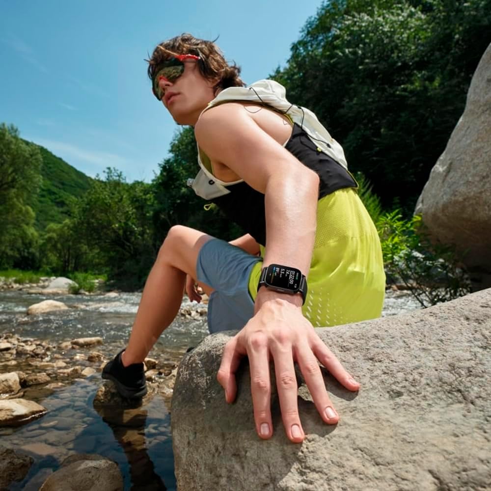 Sensor de frecuencia cardíaca (con sensor de oxígeno en sangre) | Acelerómetro | Giroscopio / Sistemas de posicionamiento por satélite GPS | Galileo | Glonass | BeiDou | QZSS / Tiempo de uso típico: 18 díasCapacidad: 470mAh / Pantalla AMOLED Cuadrada de 1.96"Resolución: 410 x 502|332PPI