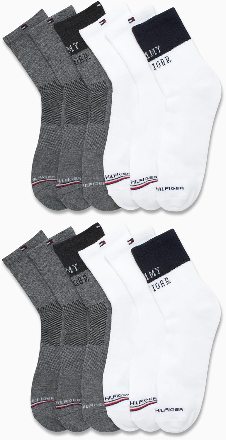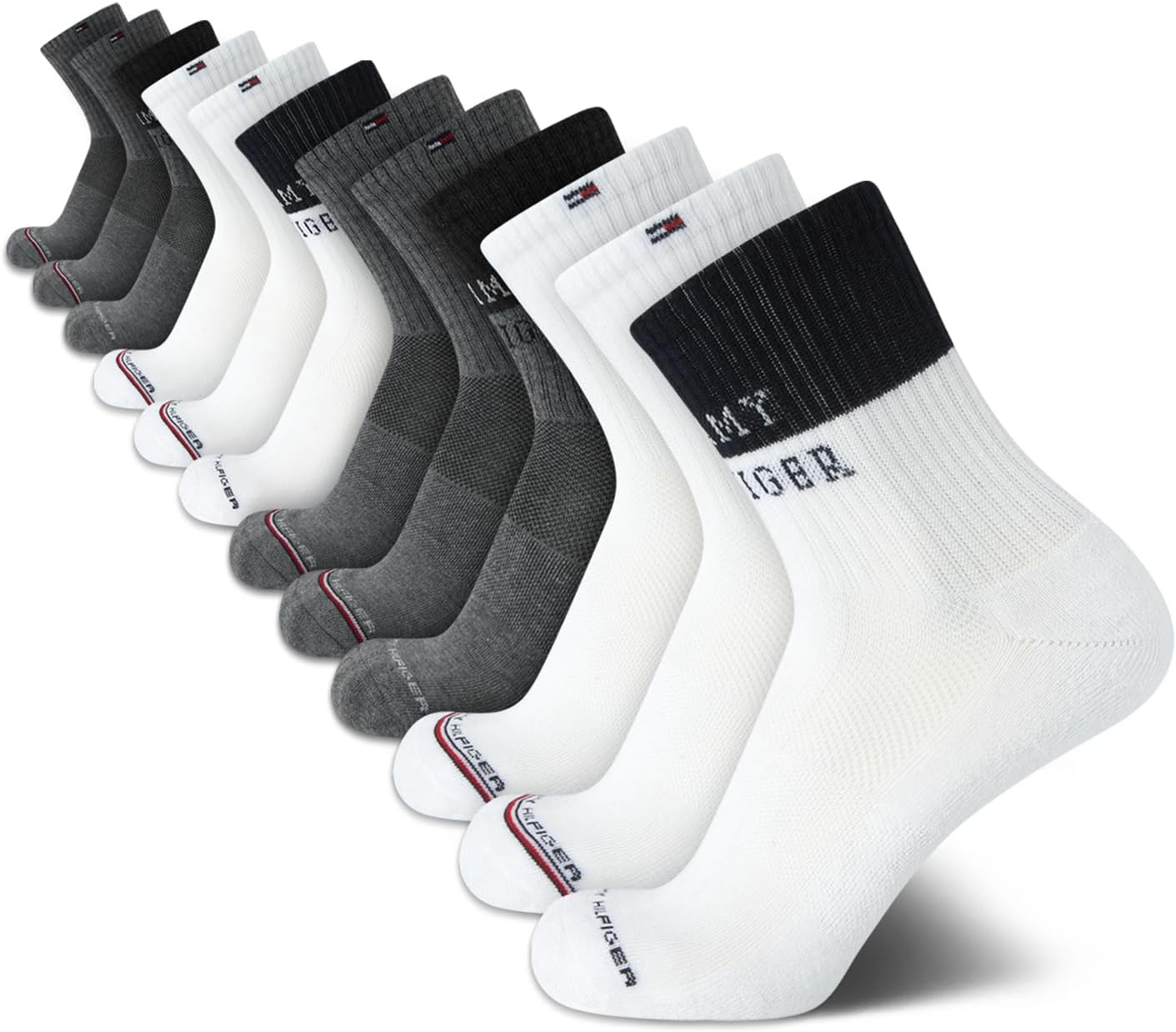 Tommy Hilfiger Mens Quarter Socks - 12 Pack Athletic Performance Cushioned Quarter Length Ankle Socks for Men for Running