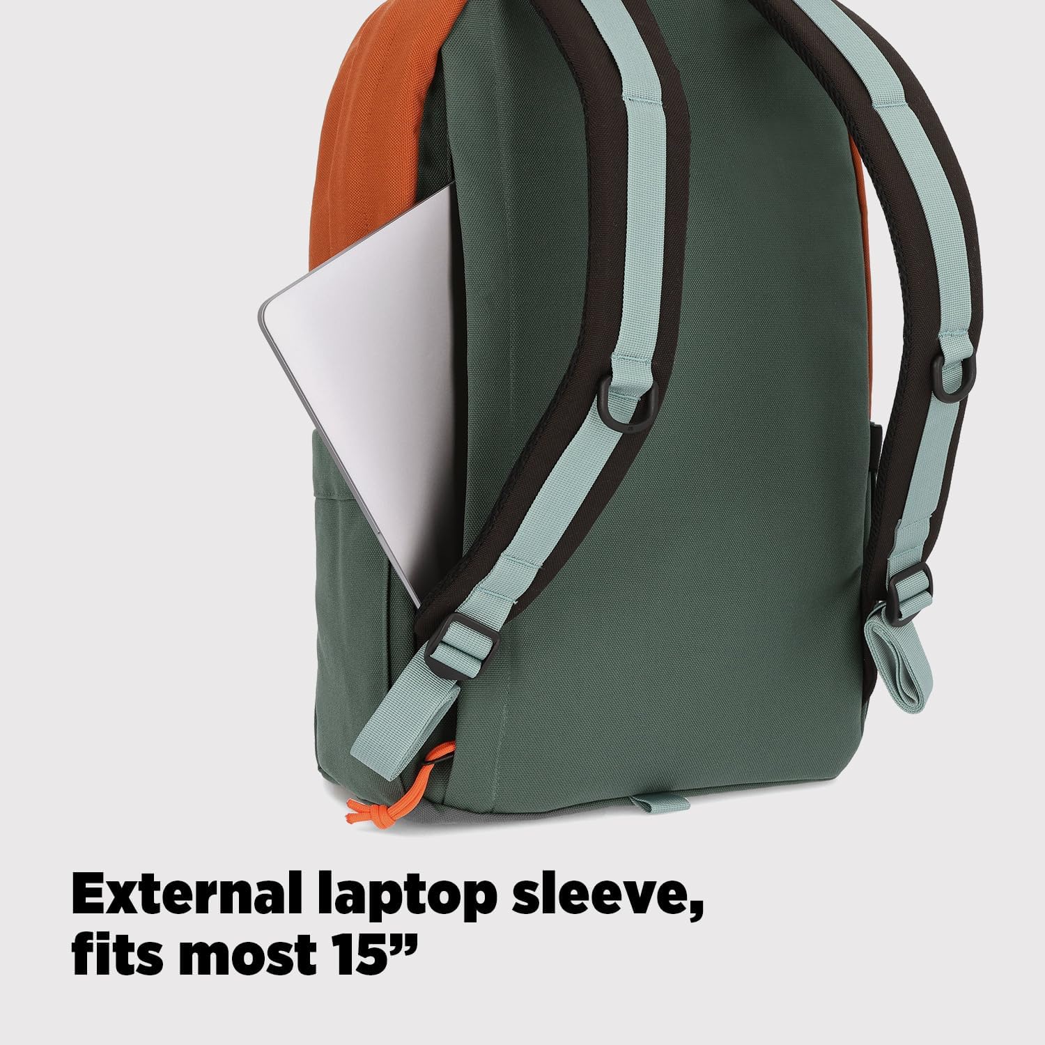 Topo Designs Daypack Classic – OG Daily Carry Pack Designed in Denver, Functional Travel Bag, Made from Recycled Nylon, 2 Padded Laptop Sleeves, 21L (Beetle/Spice)