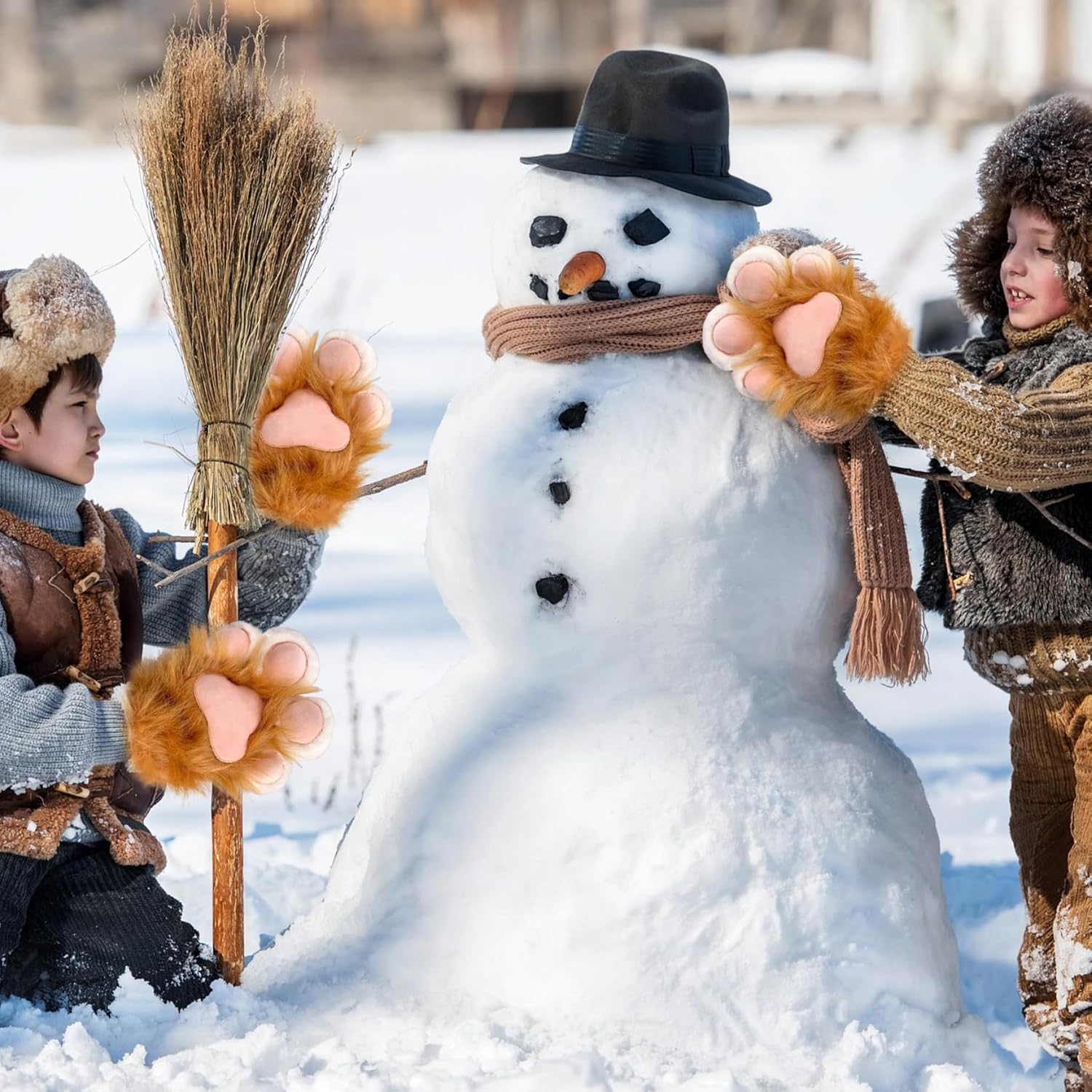 Cat Paw Gloves - Plush Furry Paws Mittens for Cosplay & Anime Convention - Orange