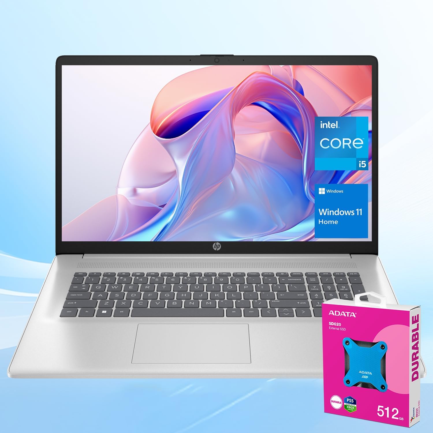 HP Essential Laptop, 17.3" FHD, Intel Core i5-1334U, 32GB RAM, 2TB SSD, Wi-Fi 6, Backlit Keyboard, Fingerprint Recognition, HDMI, Windows 11 Home, Silver, with ADATA 512 External SSD Bundle