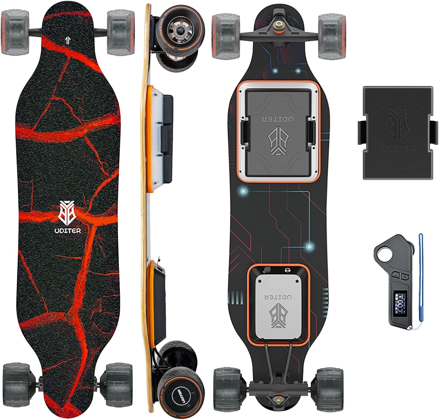 S3/Pixel Rider Electric Skateboards with Remote and Swappable Battery/Top Speed 28 Mph/2 * 600W Motors/12Miles/25Miles Max Range Electric Longboards for Adult&Beginner