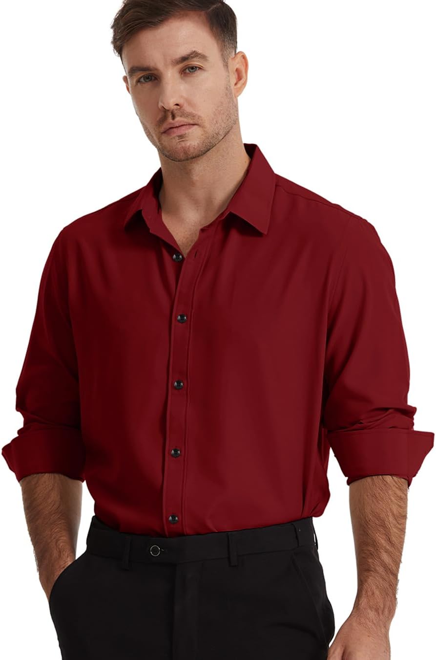Men's Dress Shirts Solid Wrinkle-Free Long Sleeve Button Down Shirt Regular Fit Formal Shirts