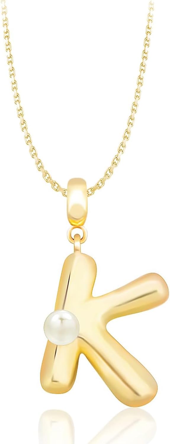 Milan Chiva Bubble Initial Letter Pendant Necklaces for Women 14K Gold Plated Puffy Tiny Letter A-Z Dainty Necklace with Cute Simulated Pearl