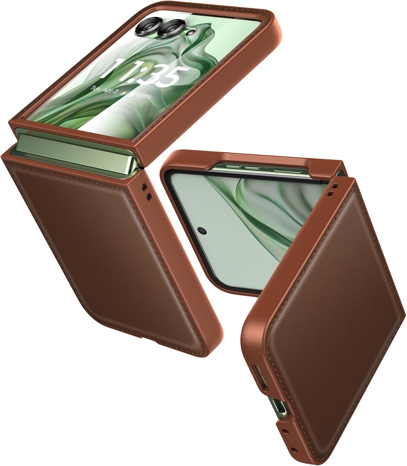 Eastcoo Slim Leather Case for Motorola Razr 50 Ultra/60 Pro, 【No Screen Protector】 Wireless Charging Support, Ultra-Thin Shockproof Protective Case Cover for Motorola Razr+ 2024/2025, Brown
