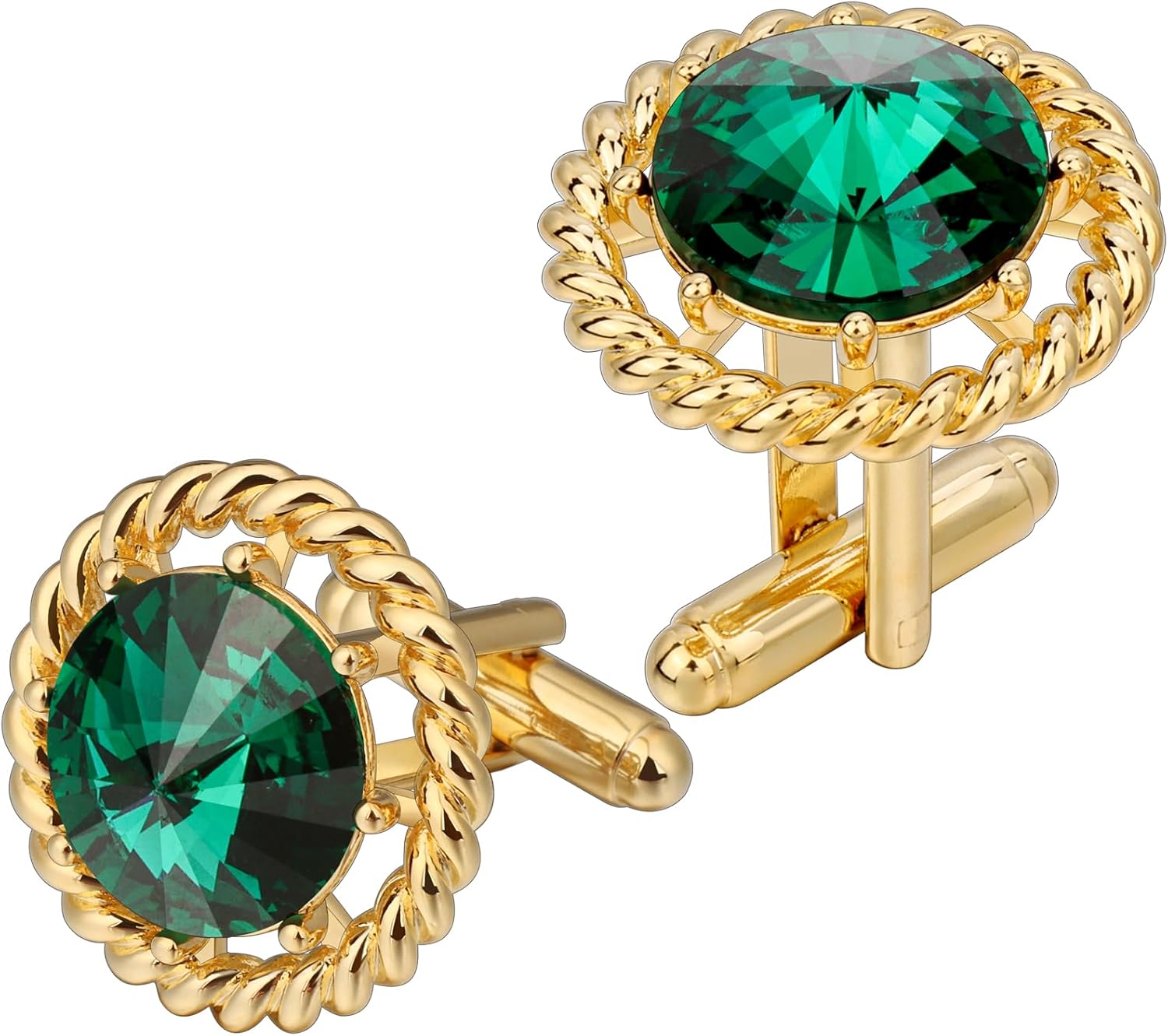 Gold Cuff Links Mens, TAIGRAMA Black Purple Green Red Crystal Cufflinks for Men as Business Wedding Birthday Gift for Groom Father Husband Boyfriend