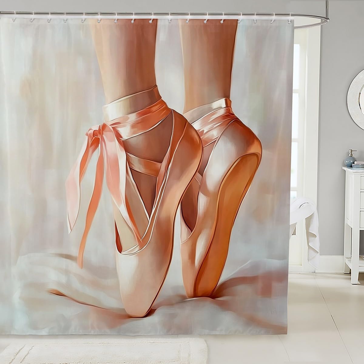 Modern Ballet Shoes Shower Curtain Girly Elegant Bathroom Curtain Ballet Dance Art Barn Door Waterproof Curtain for Kids Adult Room Decor Artistic Gymnastics Bath Curtain,72" Wx78 L