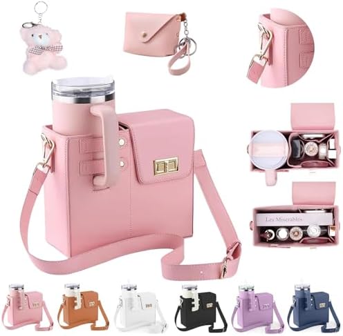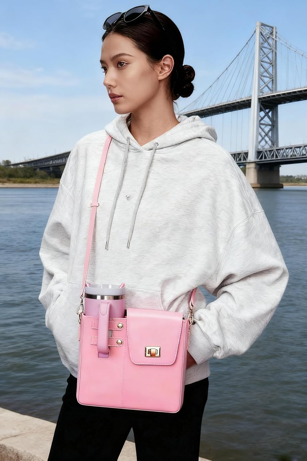 Stanley Cup Purse, Crossbody Bag with Water Bottle Holder, Adjustable Women Shoulder Strap for Stanley Cup Tumbler 40 oz