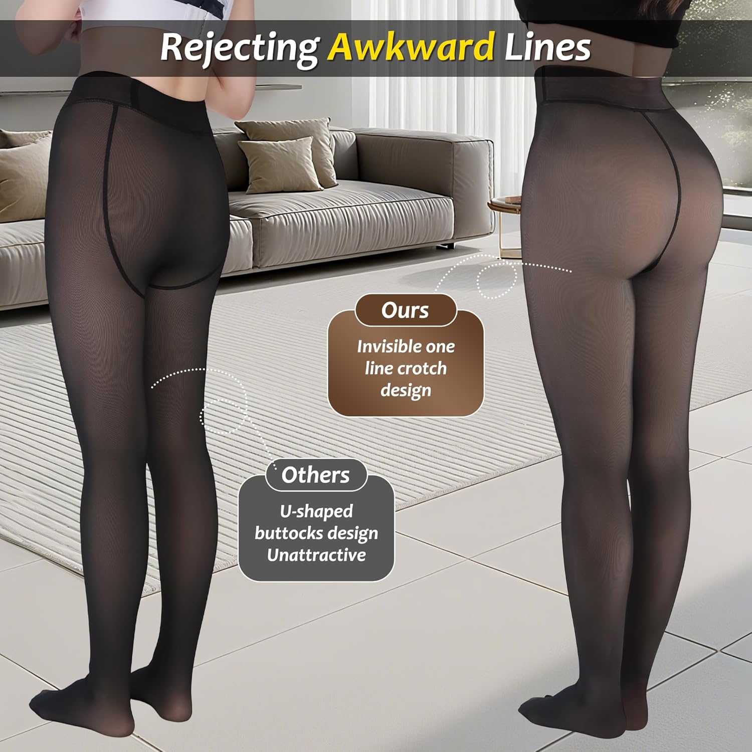 Women Fleece Lined Tights,Fake Translucent Warm Pantyhose Leggings Fleece Lined Thermal Tights for Women in Winter.