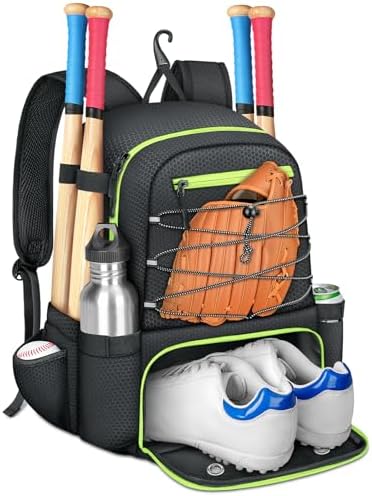 Separate Shoe Compartment: Our baseball backpack for youth includes a dedicated shoe compartment that can hold various types of trainers, keeping them separate from your other equipment. The compartment has two ventilation holes to ensure proper airflow and keep your shoes dry, even after intense games. your shoes will stay dry and fresh, even after an intense game