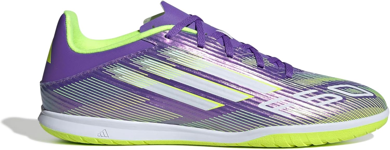 The F50 Club Indoor Soccer Shoes deliver a streamlined design built for speed. A lightweight upper showcases a refreshed graphic, blending modern aesthetics with engineered details to support dynamic movement. Designed without additional integrated technology, this model focuses purely on performance-oriented essentials. A clean finish emphasizes the F50's commitment to lightweight sensation and game-changing speed.