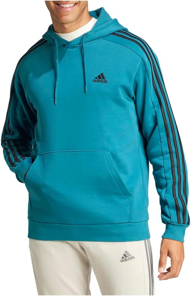 The adidas Men's 3Stripes Fleece Hoodie blends comfort and iconic style. Crafted from soft fleece fabric, this hoodie offers a cozy feel for everyday wear. The signature 3-stripe detailing along the sleeves adds a sporty touch, while the adjustable drawstring hood provides extra warmth. Whether you're relaxing or on the move, the ribbed cuffs and hem ensure a snug fit, making this hoodie a versatile wardrobe staple.
