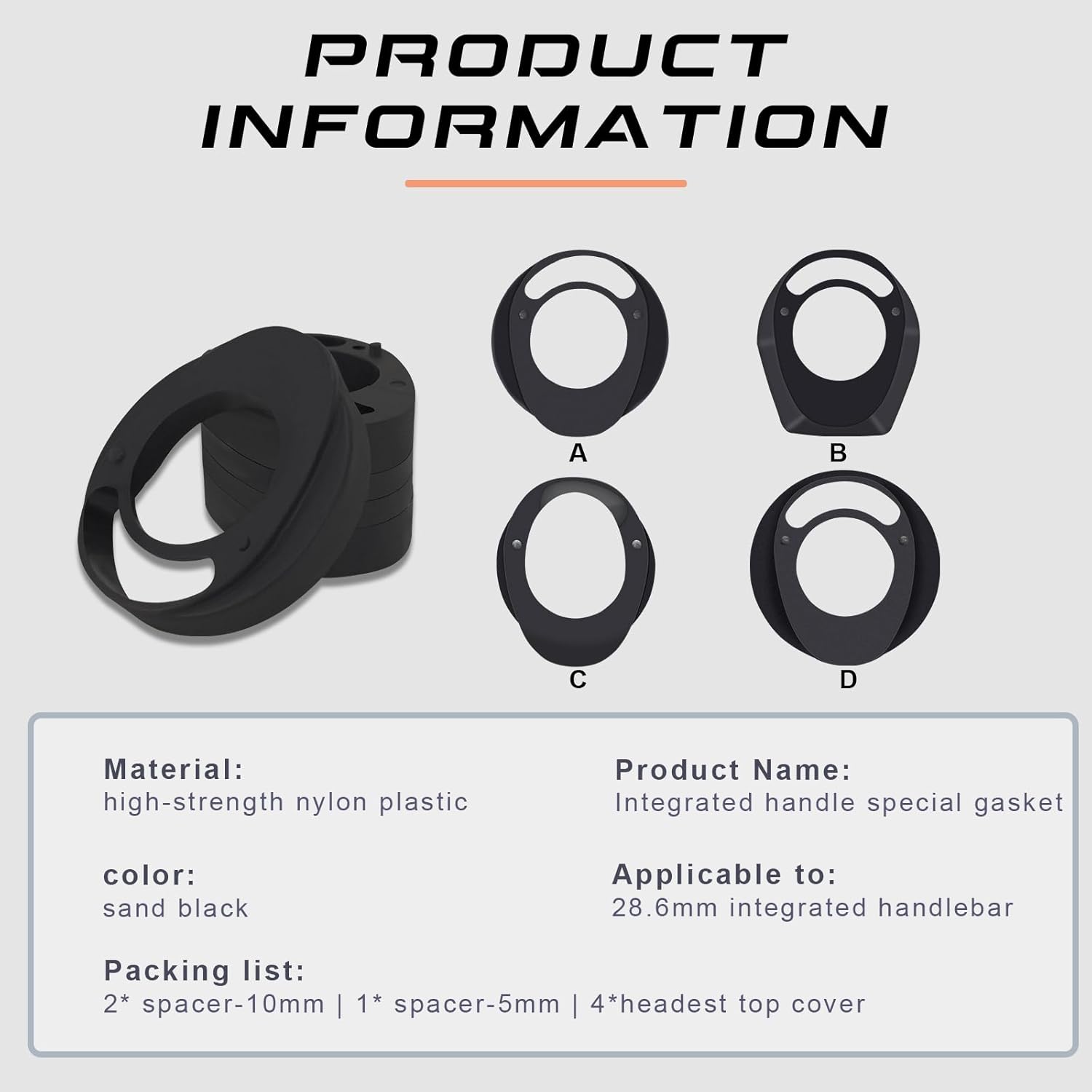 3.Headset spacers 1 1/8 inch nylon headset spacer kit fork washer for road bicycles. Automatic cutting, smooth edge, fit most of the road bicycles integrated handlebar with stem, delicate texture and durable to use.