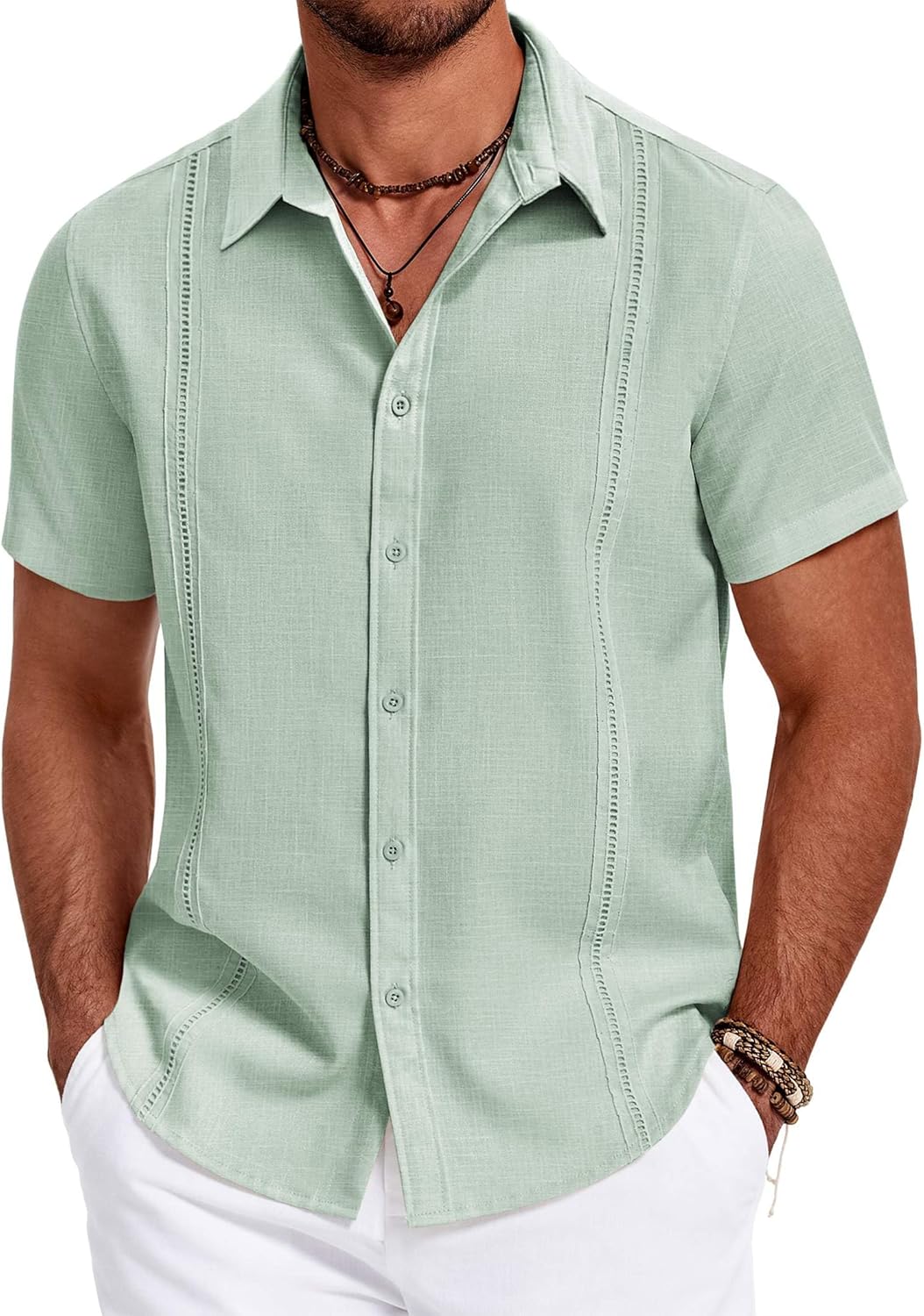 COOFANDY Men's Cuban Guayabera Summer Beach Short Sleeve Casual Vacation Wedding Shirt