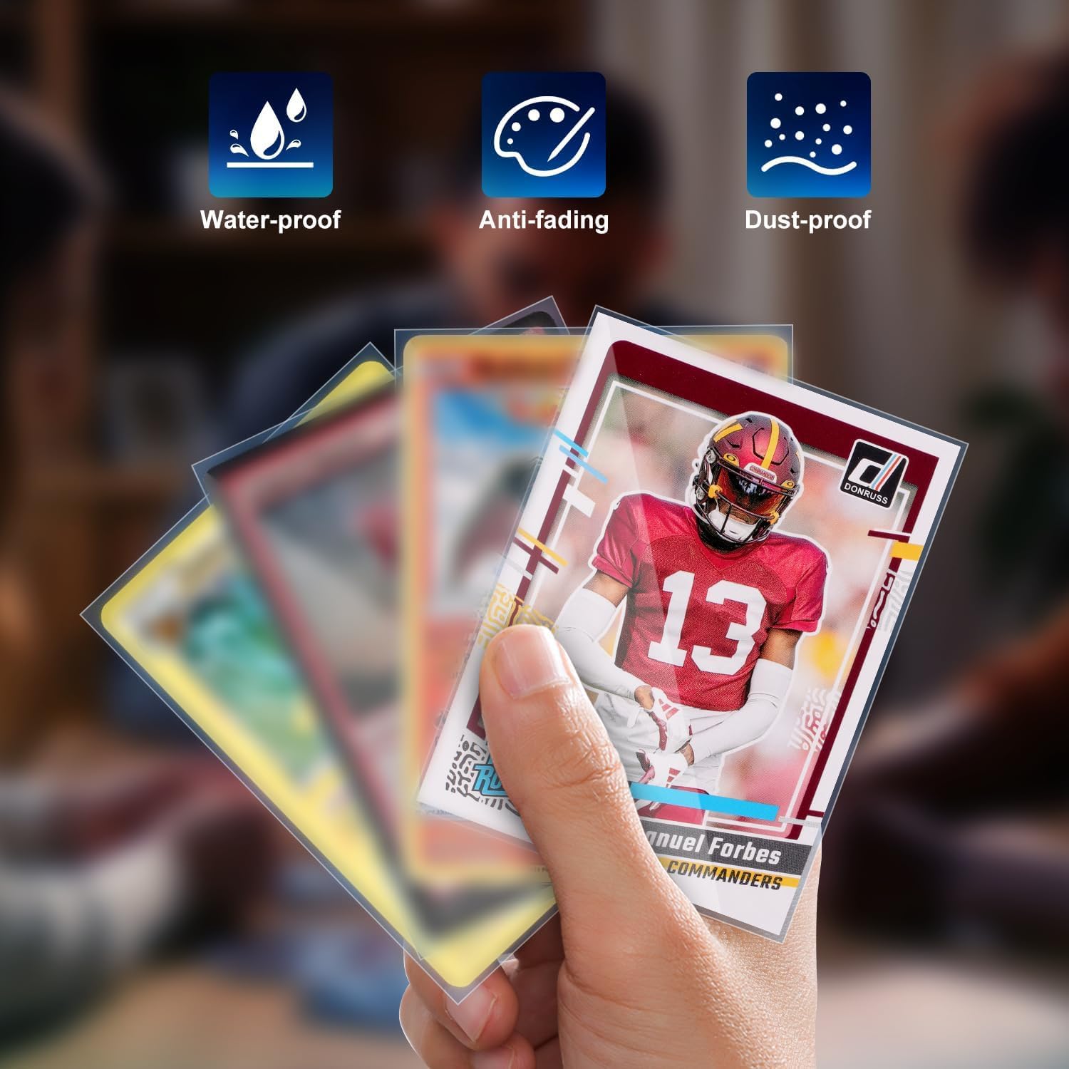 【WIDE APPLICATION】Our penny soft card sleeves are perfect for all standard-size cards, such as TCG cards, Sports Cards, Baseball Cards, Football Cards, PKM Cards, MTG Cards, Yugioh cards, Gaming Cards, and Kpop Photocard Cards.