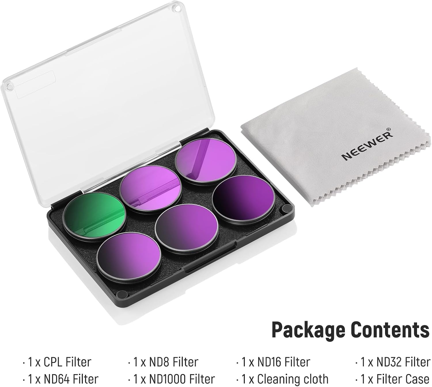 【Precise Exposure Control】 ND8, ND16, ND32, ND64, and ND1000 filters reduce light by 3, 4, 5, 6, and 10 stops respectively. They offer precise exposure control in different light conditions, prevent overexposure in long exposure photography, and bring dynamic motion blur effects