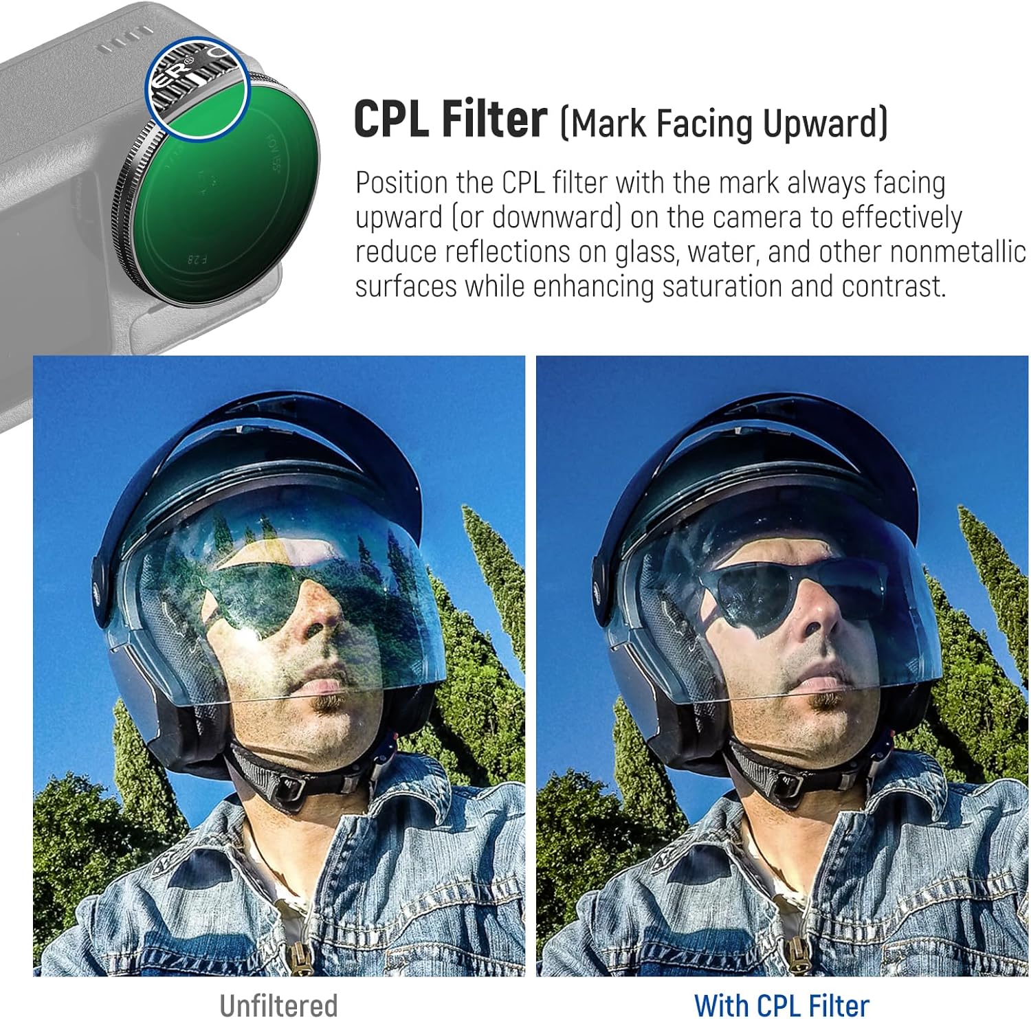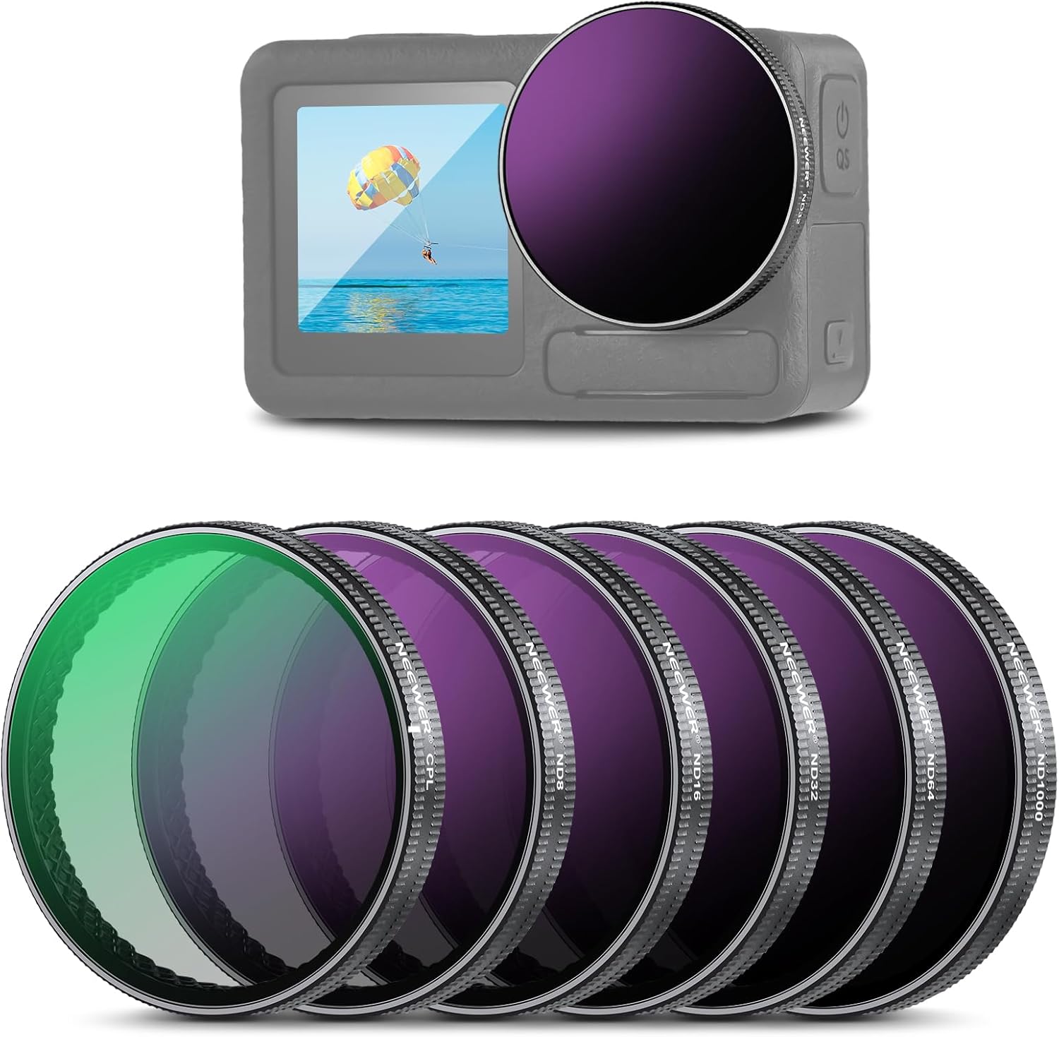 【For Action 5 Pro/Action 4/Action 3】 This filter kit compatible with DJI Osmo Action 5 Pro, Action 4, and Action 3. Ideal for POV shots of surfing, kayaking, skiing, mountain biking, skydiving, skateboarding, and hiking. Note: While the filters feature waterproof coatings, the entire action camera should not be used underwater