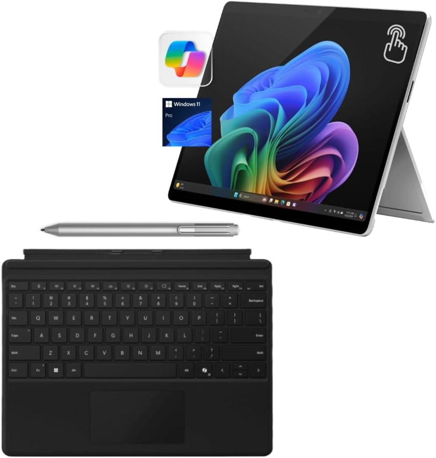 Microsoft Surface Pro 11 Bundle, 13" Copilot+ PC with Black Pro Keyboard (Without Pen Storage) & Business Pen, Snapdragon X Plus, AI Tablet Essential Bundle, 16GB RAM, 2TB SSD, Win 11 Pro
