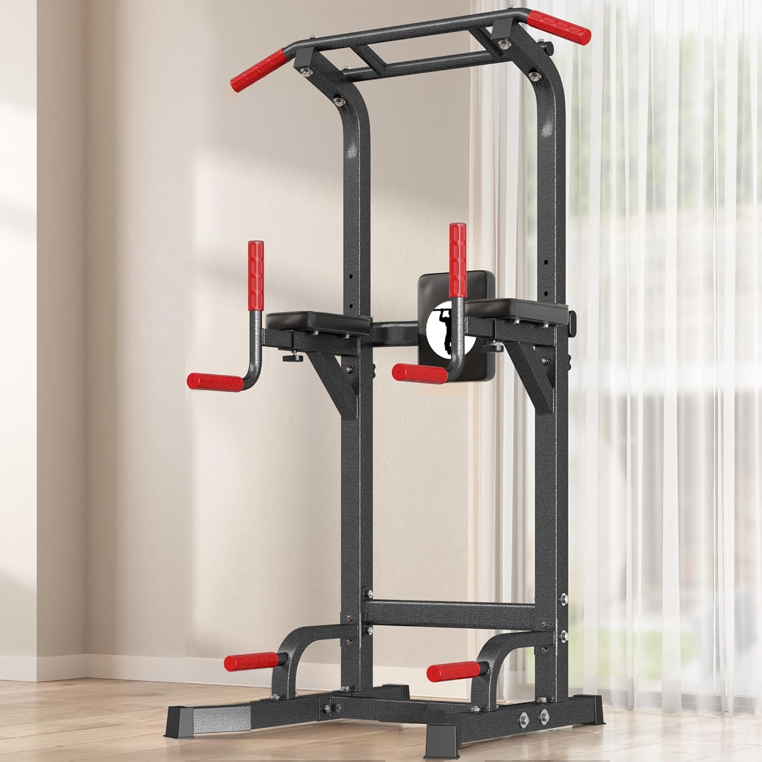 MULTI-FUNCTION POWER TOWER- This dip station for your home gym supports a variety of exercise routines, including pull-ups, dips, chin-ups, push-up, knee raise,leg raises, and tricep dips.It helps you build triceps, chest, arm, back and shoulder muscles along with incredible upper body strength.Suitable for all fitness and strength-building workouts.