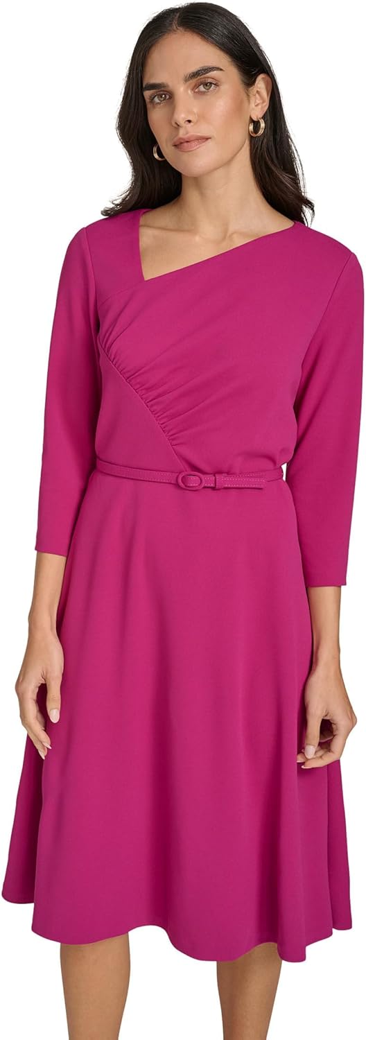 This Calvin Klein Women's Dresses Dress is a scuba crepe midi 3/4 sleeve basic day dress