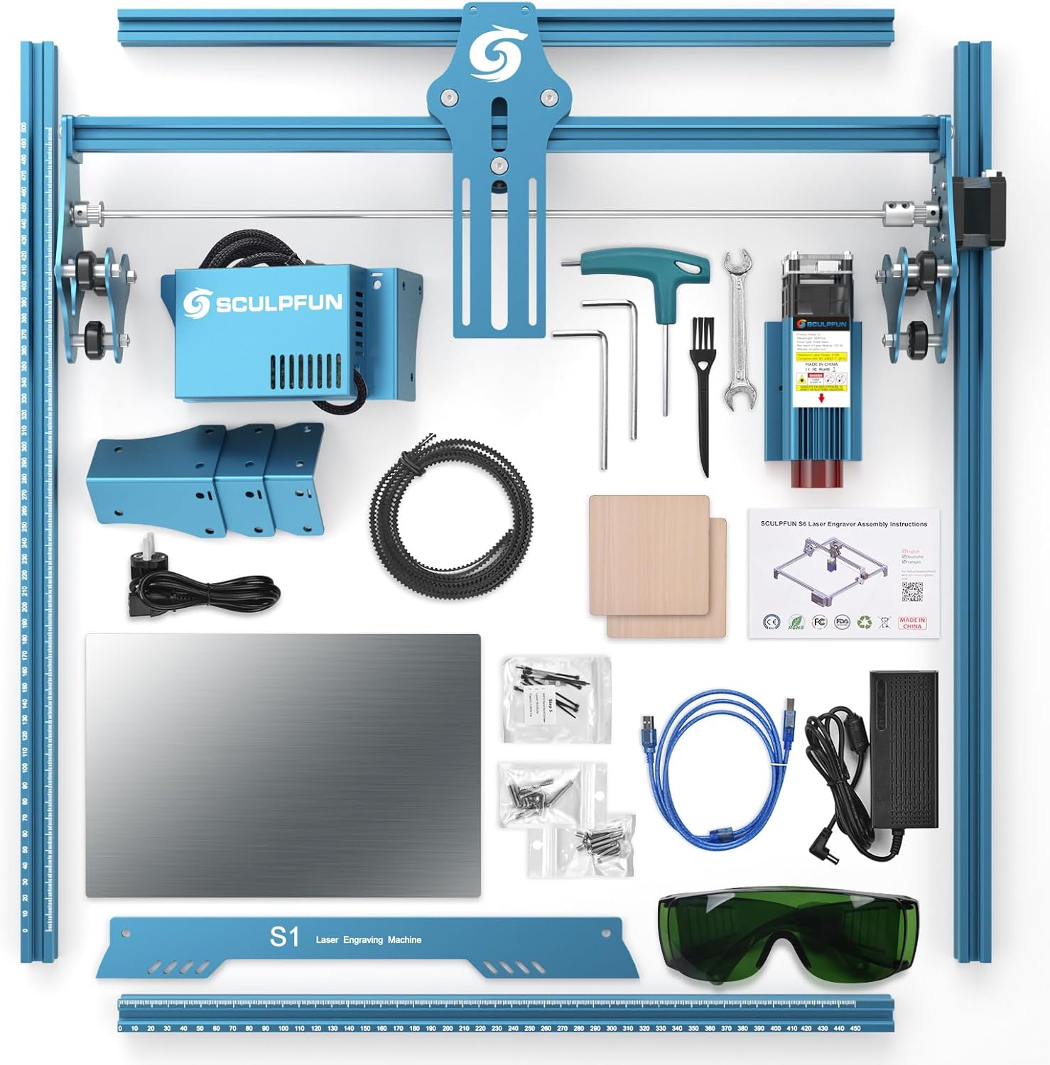 SCULPFUN S1 Laser Engraver, Laser Engraving Machine with 0.01mm High Precision, High Speed Laser Cutter for Wood Metal and Leather, Engraving Area 410 * 420mm