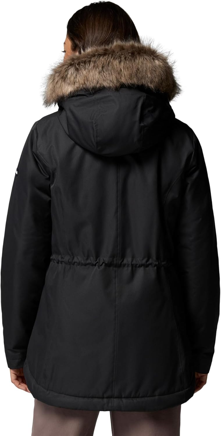 This Columbia women’s parka is insulated and thermal-lined to fend off frigid temps in style. A fleece-lined hood dials up the cozy, while the water-resistant shell repels light rain. Remove the faux fur trim to instantly switch up the look. Columbia offers this jacket in multiple colors and sizes. Extended sizing available. Regular fit.