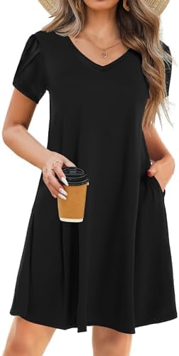 HOTOUCH Womens Summer Floral Beach V Neck Dresses Short Sleeve T Shirt Sundresses with Pockets 2025 Hawaiian Vacation