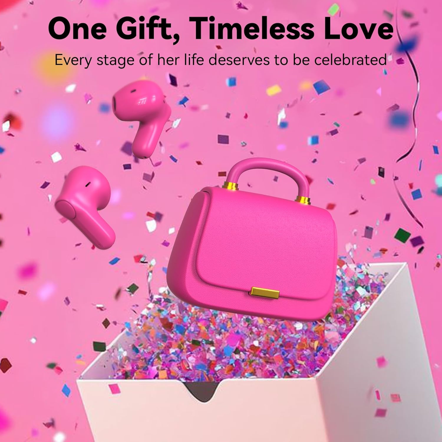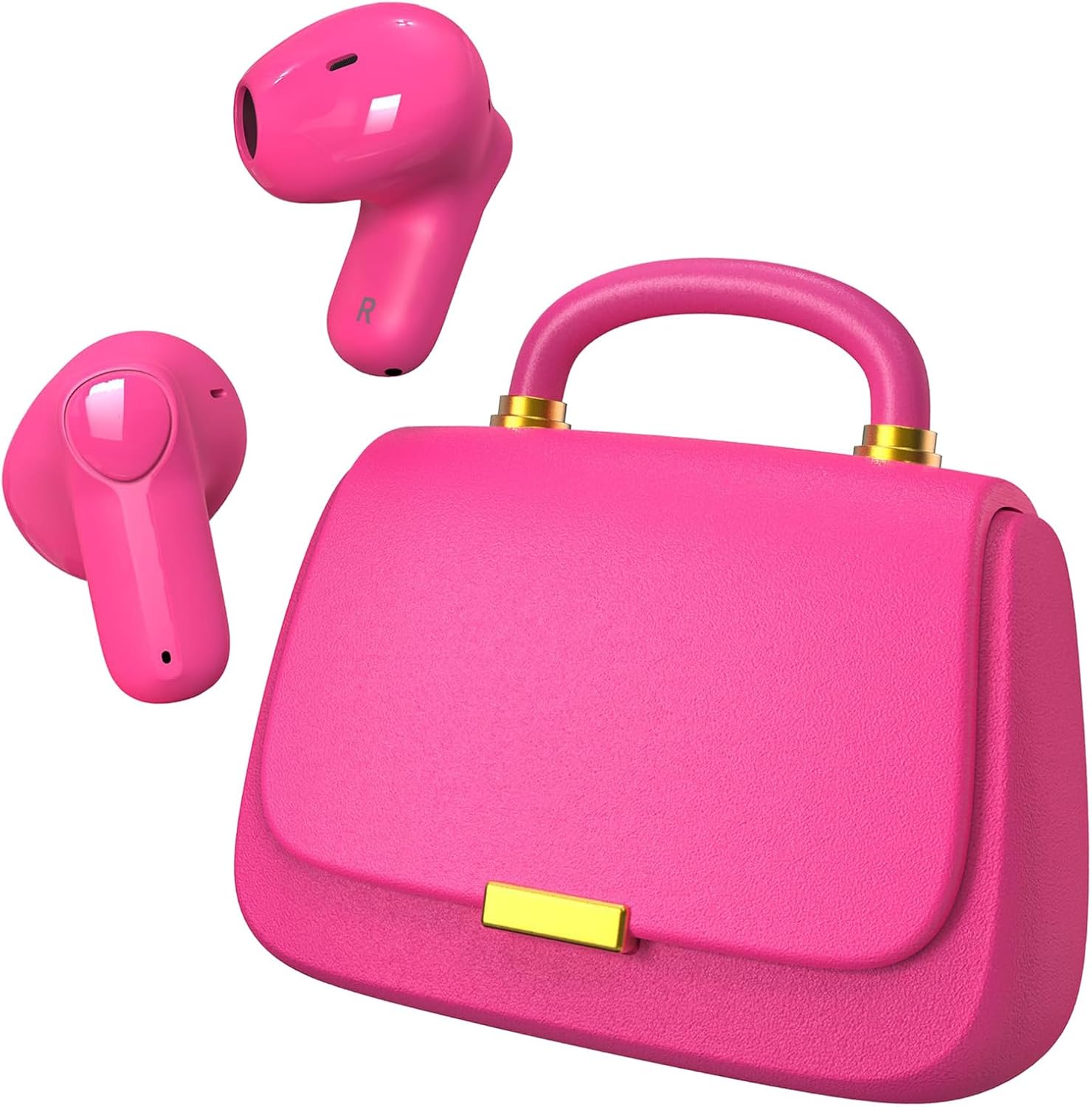 ANCwear Ear Buds,Bluetooth 5.3 in-Ear Headphones,13mm Drivers Deliver Premium Sound Earphones,22H Playtime True Wireless Earbuds with Unique Mini Handbag Charging Case (Classic, Hot Pink)