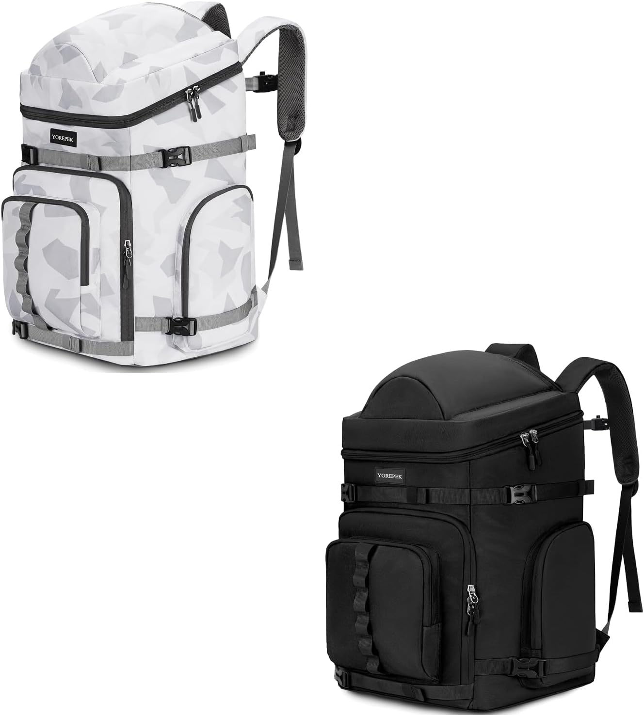 Boot Storage & Padded Back: Brand new geometric design YOREPEK snow ski bags fits up to US size 13 boot; The boot's storage lower part is made of a material that is similar to the indestructible and waterproofed tarpaulins, so the flap also acts as a stepping pad to keep your feet away from the snowy parking lot while changing out of boots on top; Thanks to equipped with nicely padded of backpack flap, the ski boot bag is comfortable to wear, and the ski boots don't stab you in the back