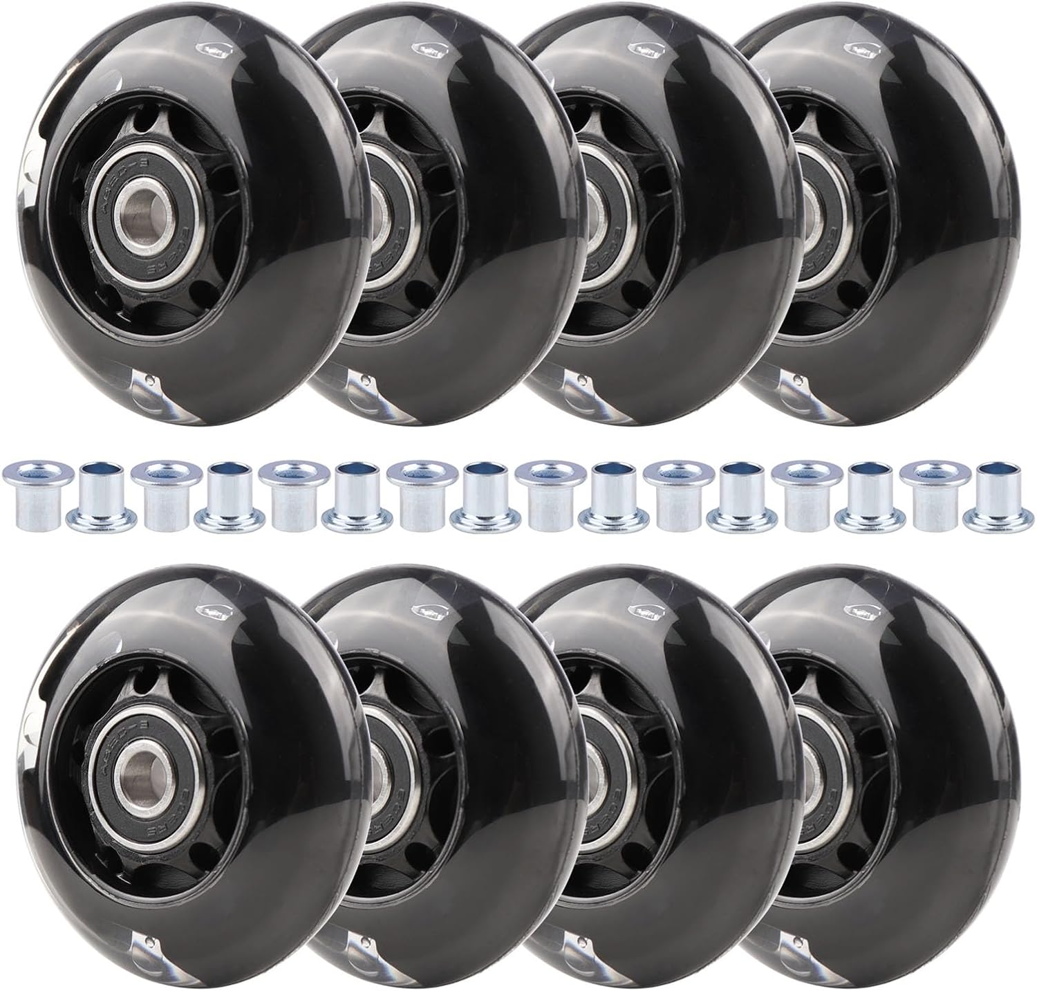 8pcs Inline Skate Wheels Led Light-Up Wheels 64/70/72/76/80mm w/Bushings 85-88A for Kids and Youth Beginners Children's Inline Skates Indoor/Outdoor Use (Black, 64mm)