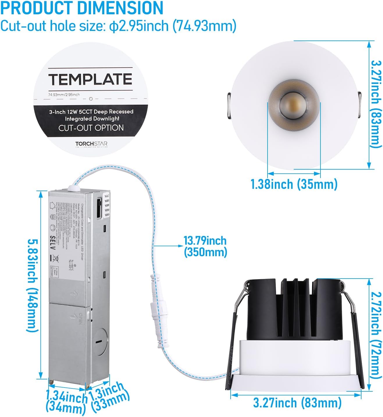 Beauty Meets Performance: Tiny 3-inch design with powerful 12W output, 2700K/3000K/4000K/4500K/6500K 5 adjustable color temperatures, and a high CRI of 90 for superior color rendering. Enjoy 50,000 hours of use with a 3-year warranty
