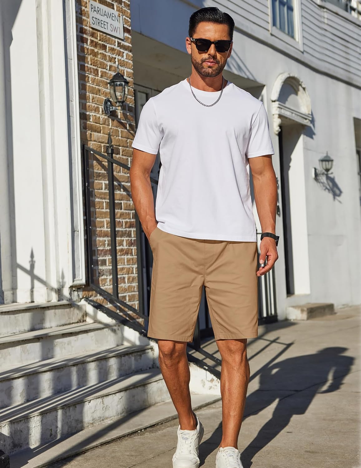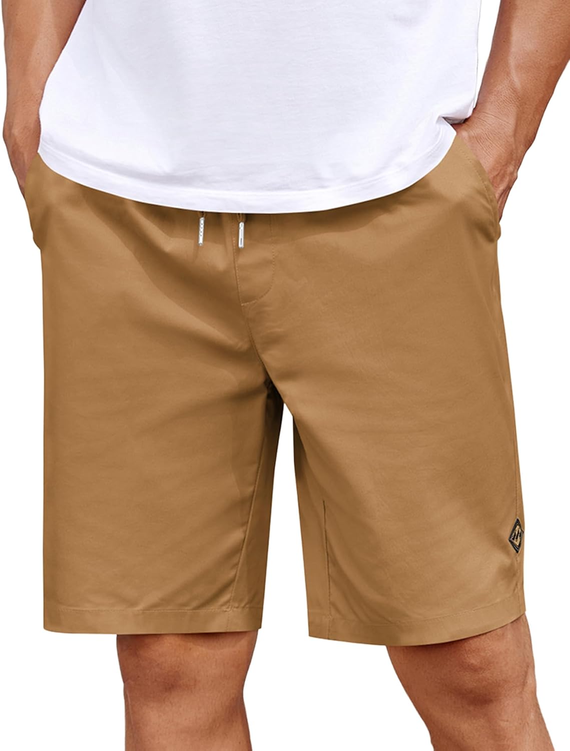 COOFANDY Mens Casual Shorts Cotton Elastic Drawstring Shorts Summer Beach Chino Shorts
