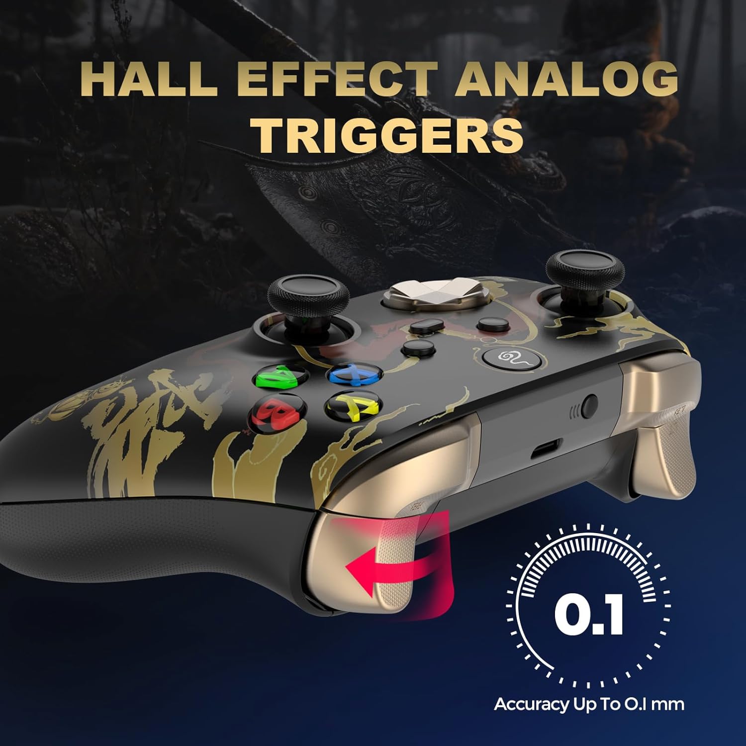 【HALL LINEAR TRIGGER】The gamepad uses Hall linear triggers for increased precision,increased speed control and sensitivity over your in-game actions.Experience the realism of throttle from low to high when playing racing games.