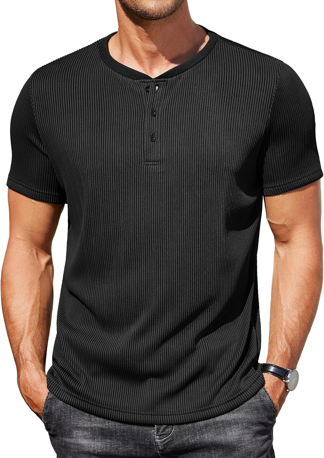 COOFANDY Men's Henley Shirts Short Sleeve Casual Tee Summer Button Henley Soild T Shirts