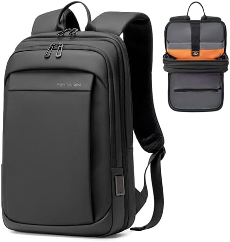 FENRUIEN Work Backpack for Men, Water Resistant Expandable Backpack with USB C Charging Port, Black 15.6 Laptop Backpack