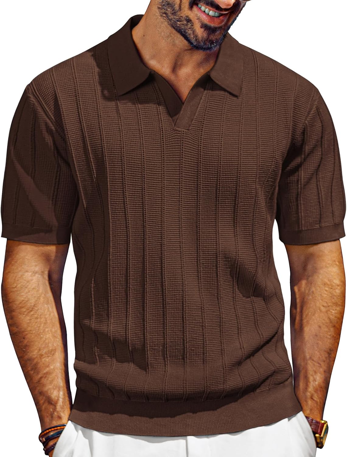 PJ PAUL JONES Mens Polo Shirts V-Neck Knit Polo Textured Summer Shirts