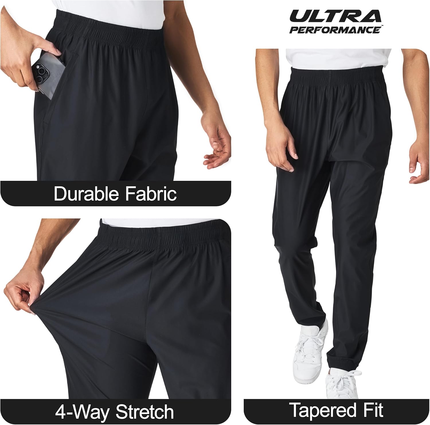 Ultra Performance Men's Athletic Jogger Pants – Stretch Nylon Gym Pants, Active Workout Joggers with Pockets for Men